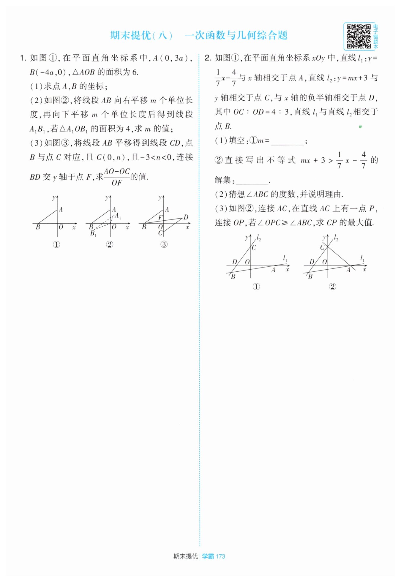 $(2)設(shè)A_{1}B_{1}與y軸交于點D,分兩種情況:\ $