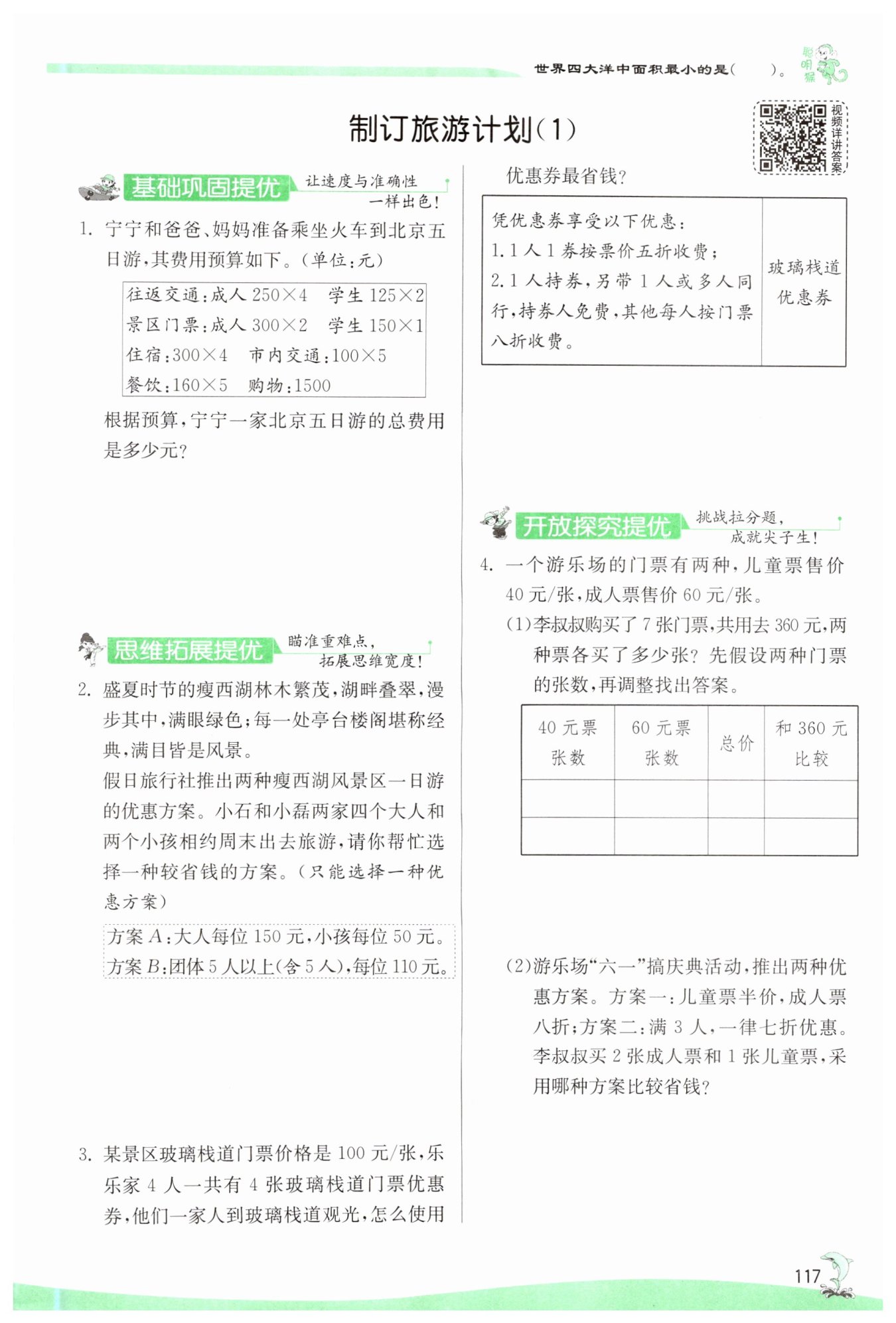 答:寧寧一家北京五日游的總費(fèi)用是6000元。