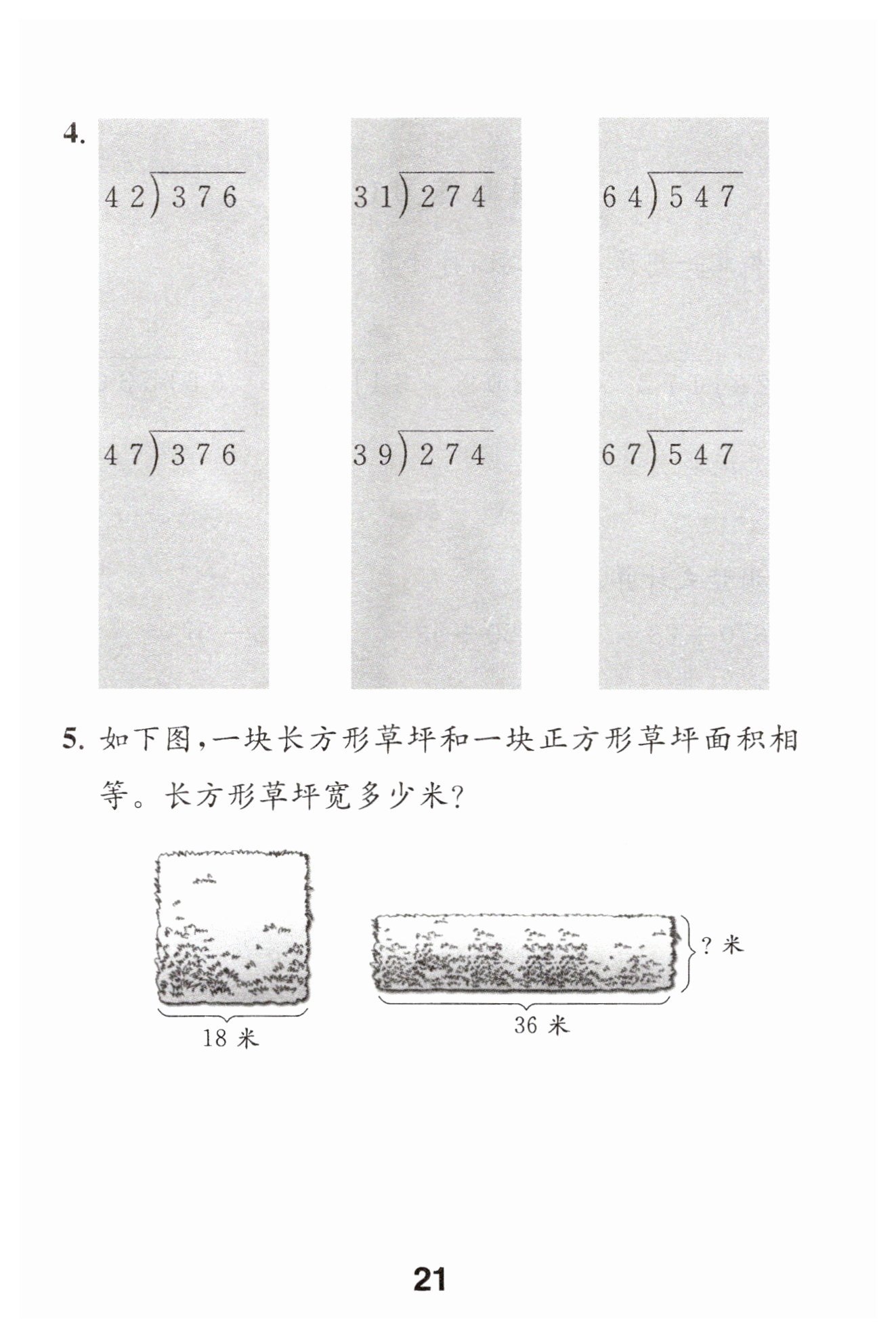 18×18÷36=9(米) 答:長方形草坪寬9米。