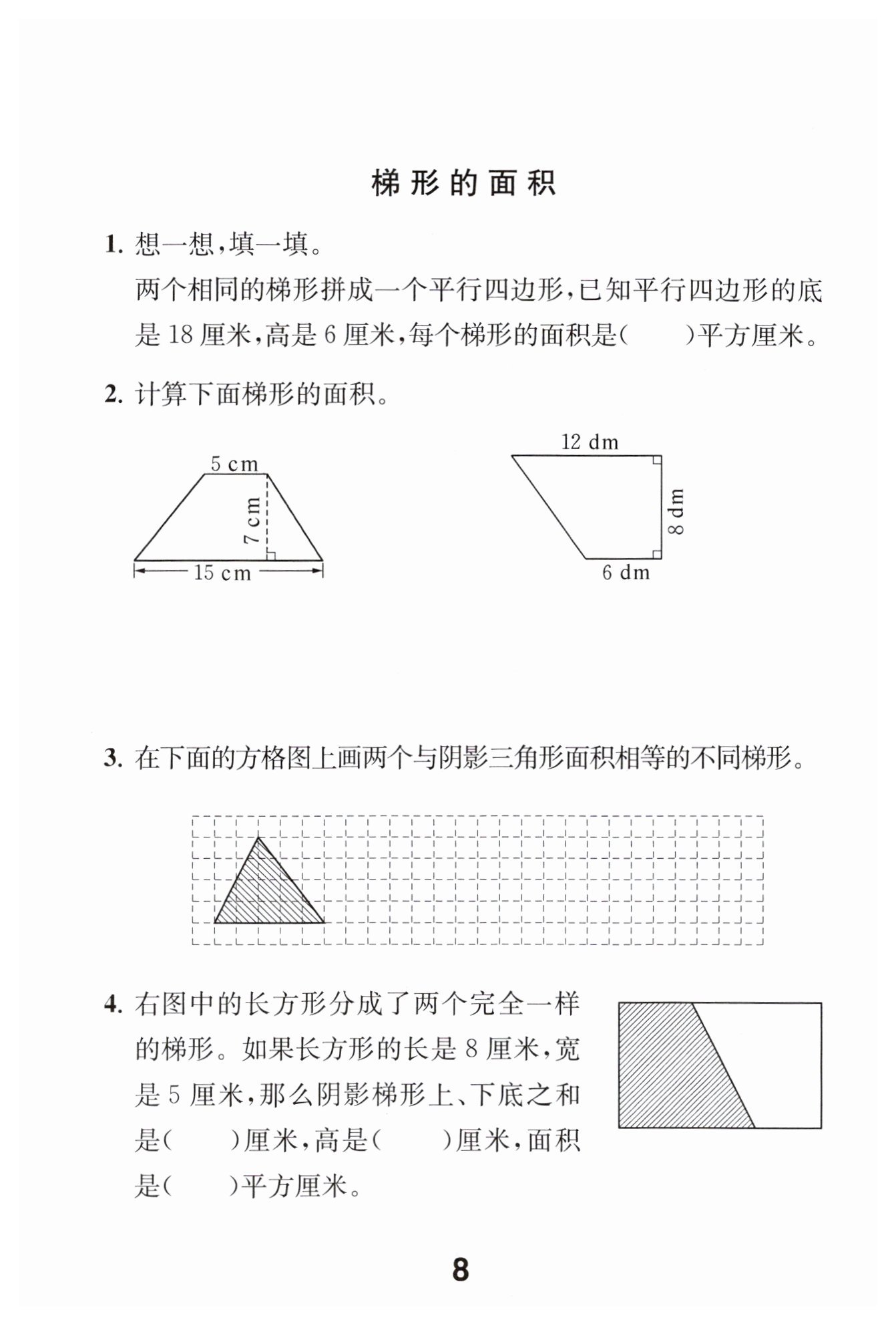 ?$(6 + 12)×8\div 2 = 72(\mathrm {dm}^2)$?