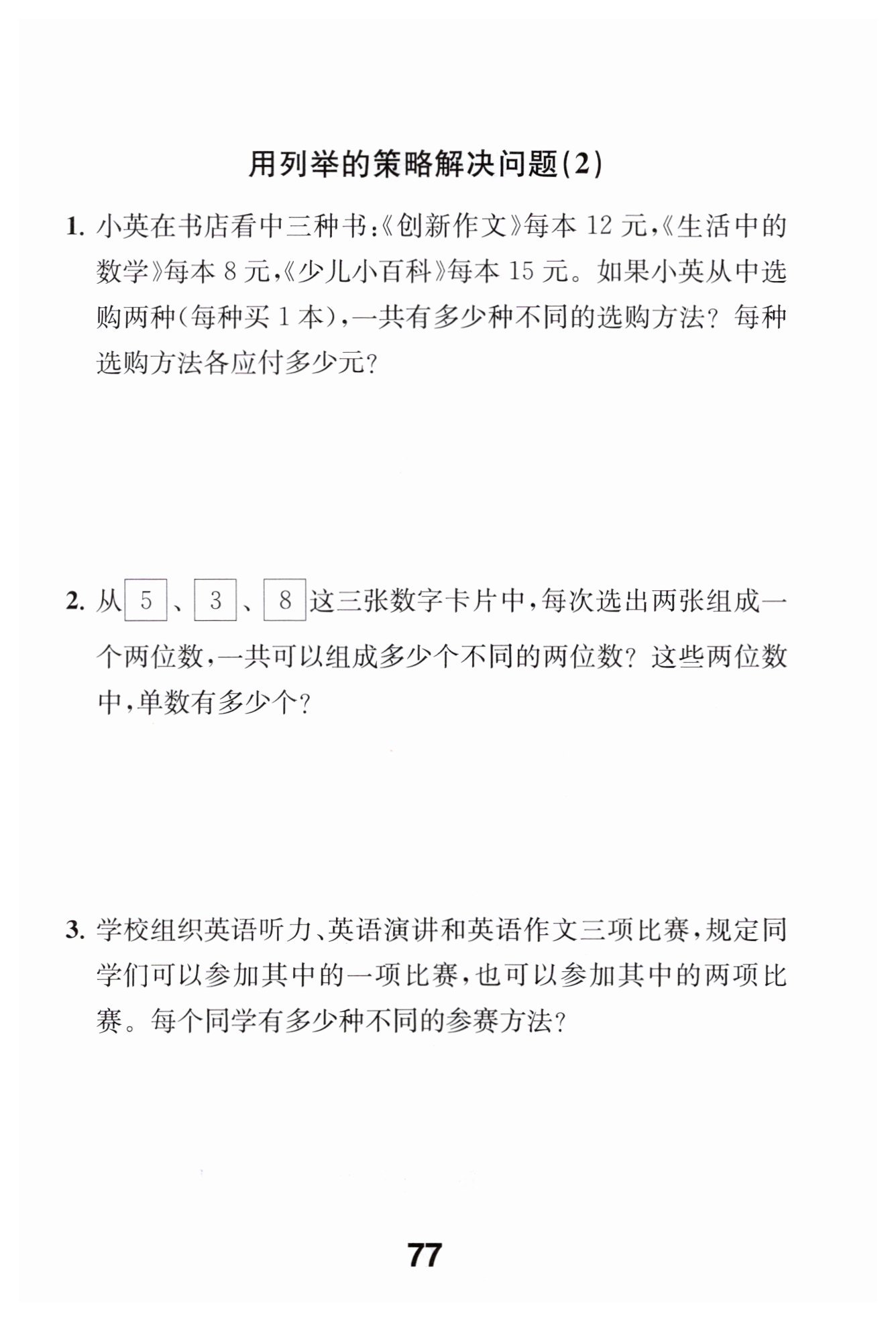 答:一共有3種不同的選購(gòu)方法,分別應(yīng)付20元,27元,23元。