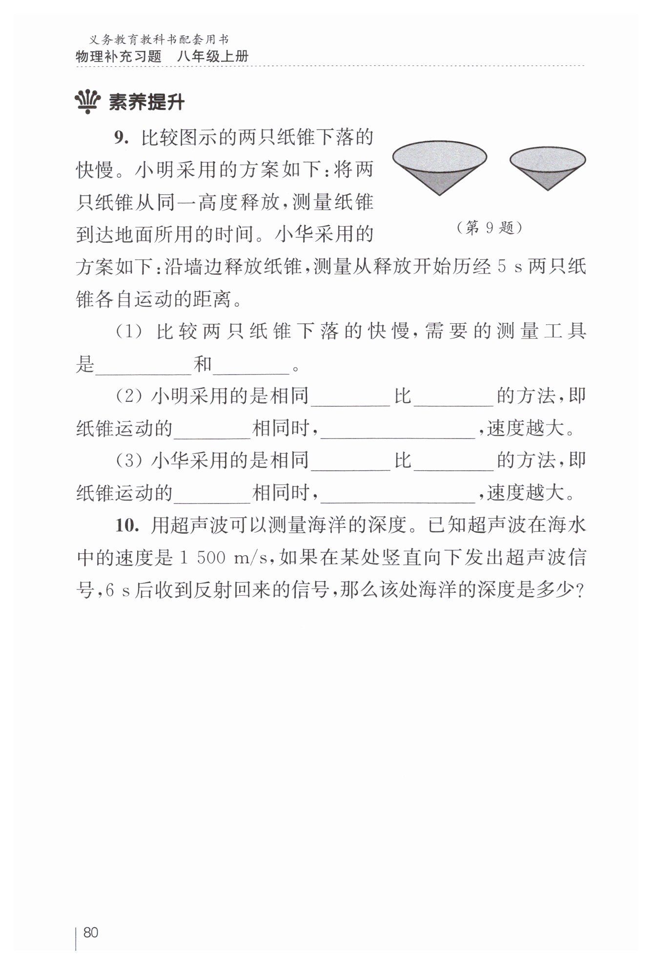 解:聲波在海水中的傳播速度是?$v=1500\ \mathrm {m/s}$?,超聲波傳到海底的時(shí)間:?$t=\frac 12×6\ \mathrm {s}=3\ \mathrm {s}$?;