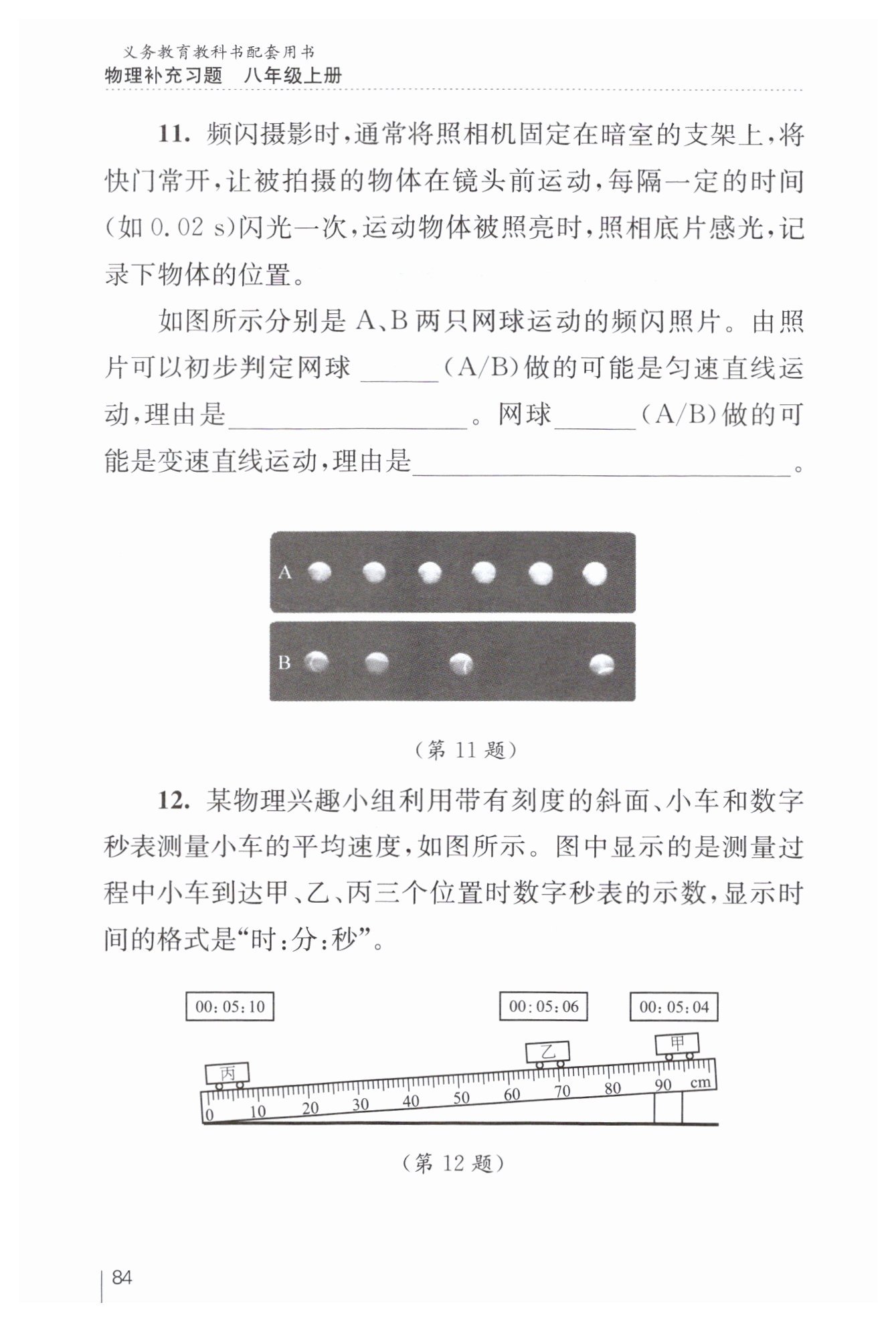 B在同一直線上運動,在相等時間間隔內,B的路程越來越大,相等時間內的路程不相等