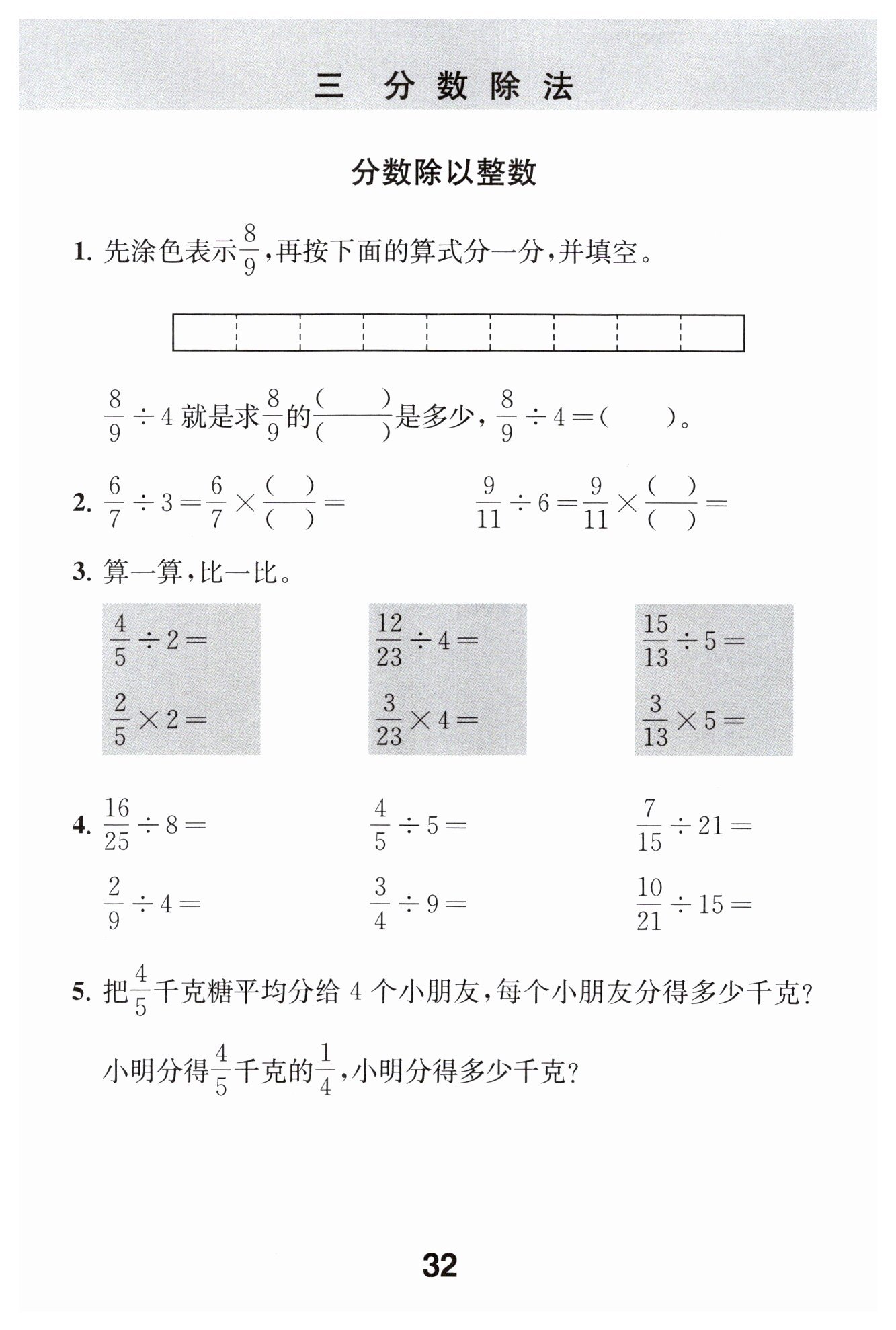 答:每個小朋友分得?$\frac {1}{5}$?千克,小明分得?$\frac {1}{5}$?千克。