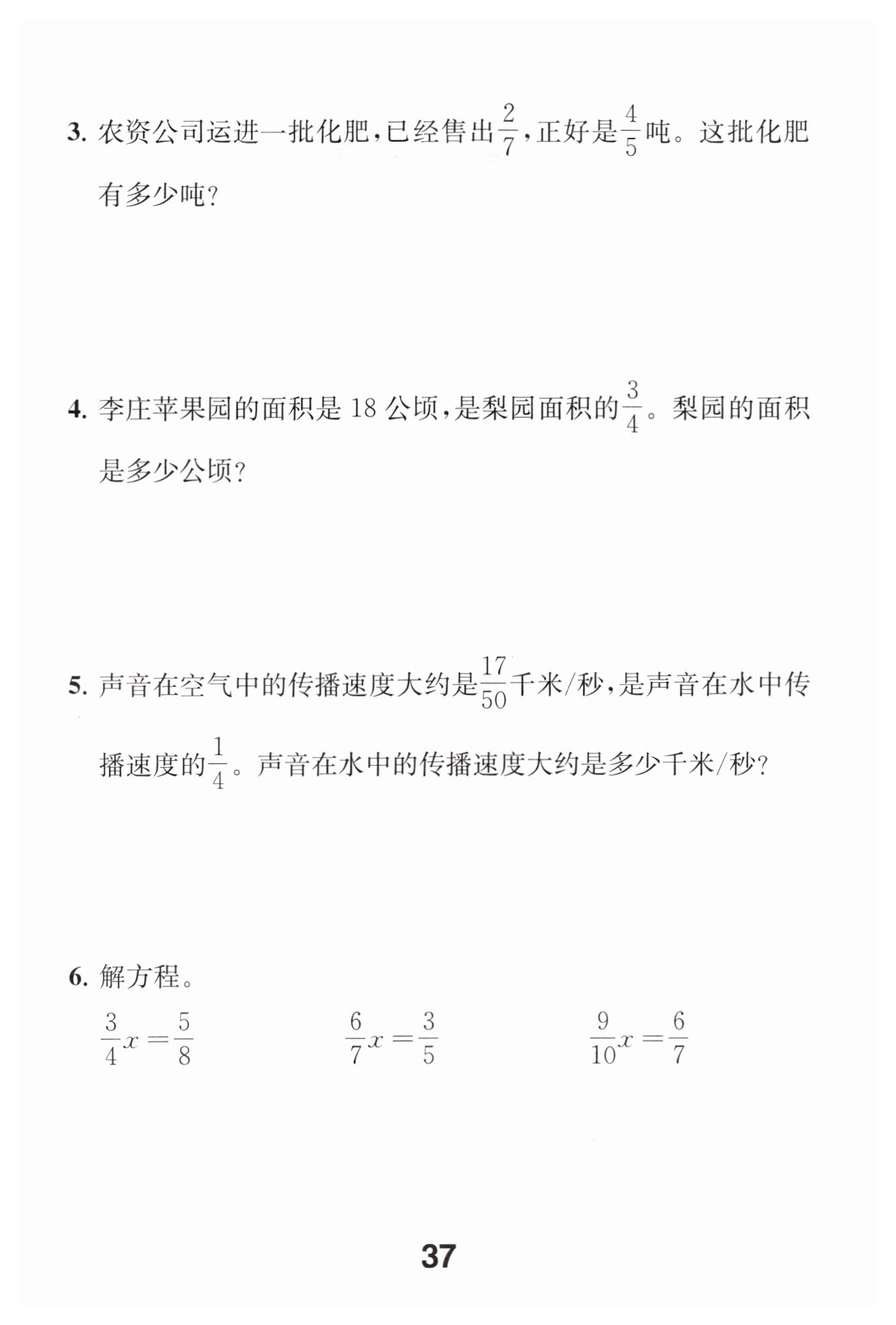 $\begin {aligned}解: x&=\frac {5}{8}÷\frac {3}{4}\\x &=\frac {5}{6}\end {aligned}$