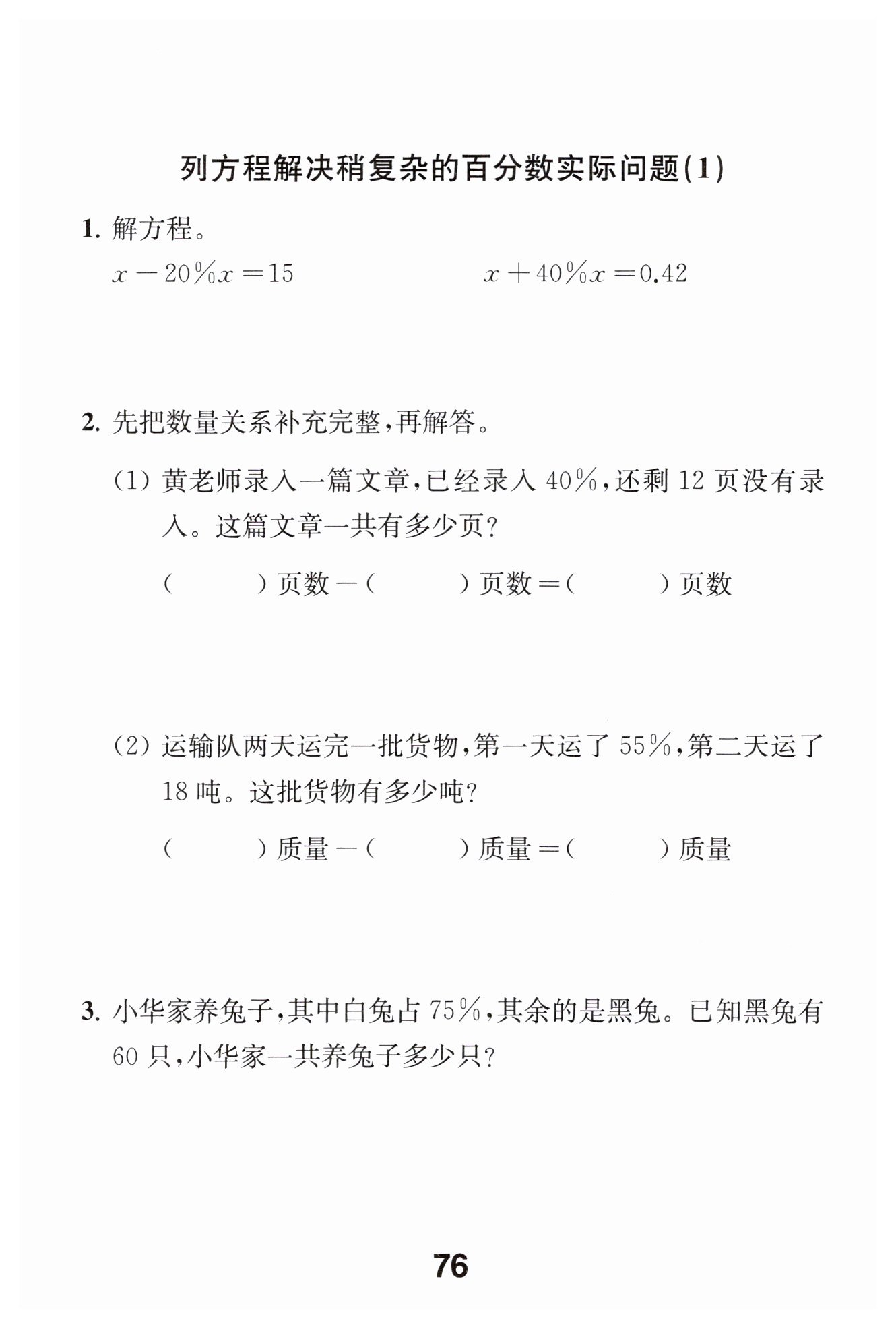 ?$\begin {aligned} x - 75\%x&=60 \\0.25x&=60 \\x&=240 \end {aligned}$?