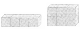 左圖的長(zhǎng)是4厘米,寬是1厘米,高是1厘米,體積是4立方厘米;右圖的長(zhǎng)是3厘米,寬是1厘米,高是2厘米,體積是6立方厘米