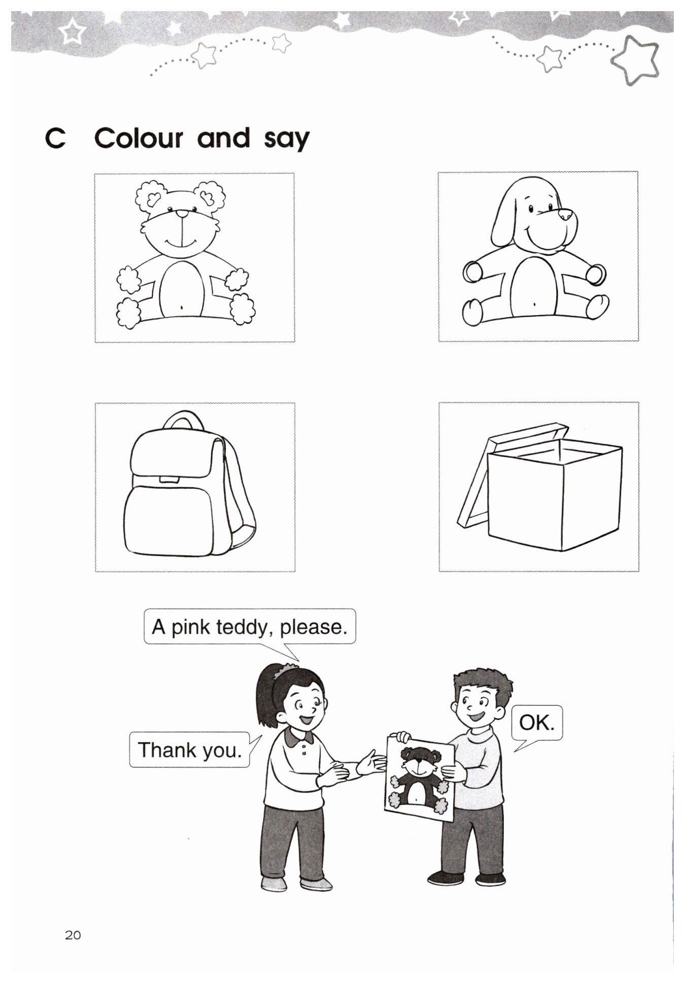 請(qǐng)同學(xué)們將下列圖片涂上自己喜歡的顏色并與自己的同伴根據(jù)以下示例進(jìn)行交流。