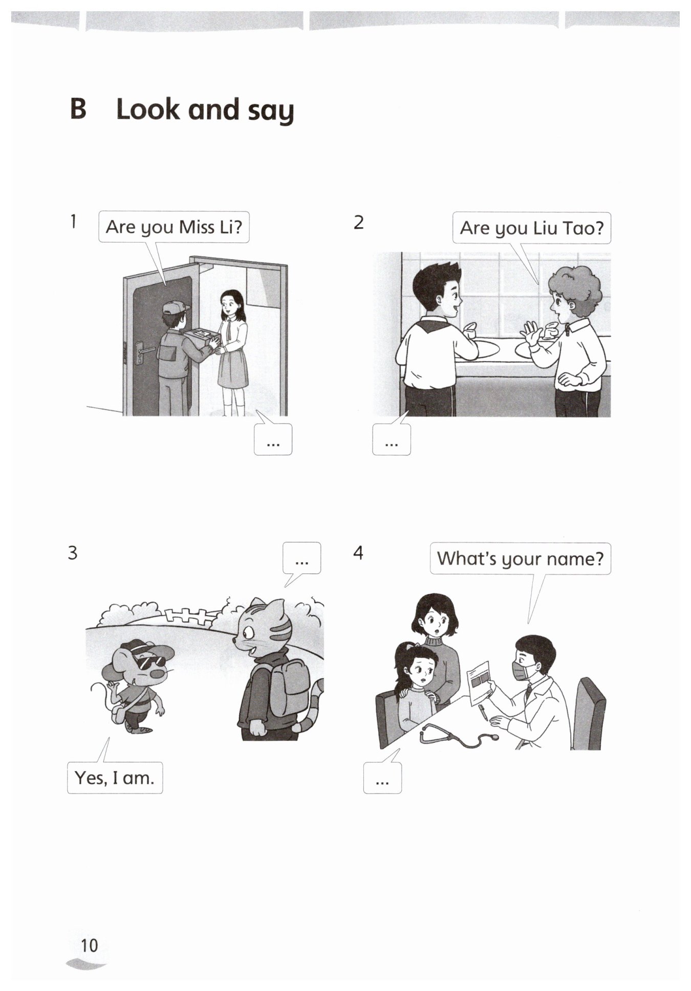 【解析】:這是一道英語(yǔ)看圖說話的題目,考查學(xué)生對(duì)英語(yǔ)日常用語(yǔ)的理解和運(yùn)用能力,以及觀察圖片獲取信息并進(jìn)行表達(dá)的能力。解題關(guān)鍵在于準(zhǔn)確識(shí)別圖片中的人物和對(duì)話情境,然后用合適的英語(yǔ)句子進(jìn)行回答。