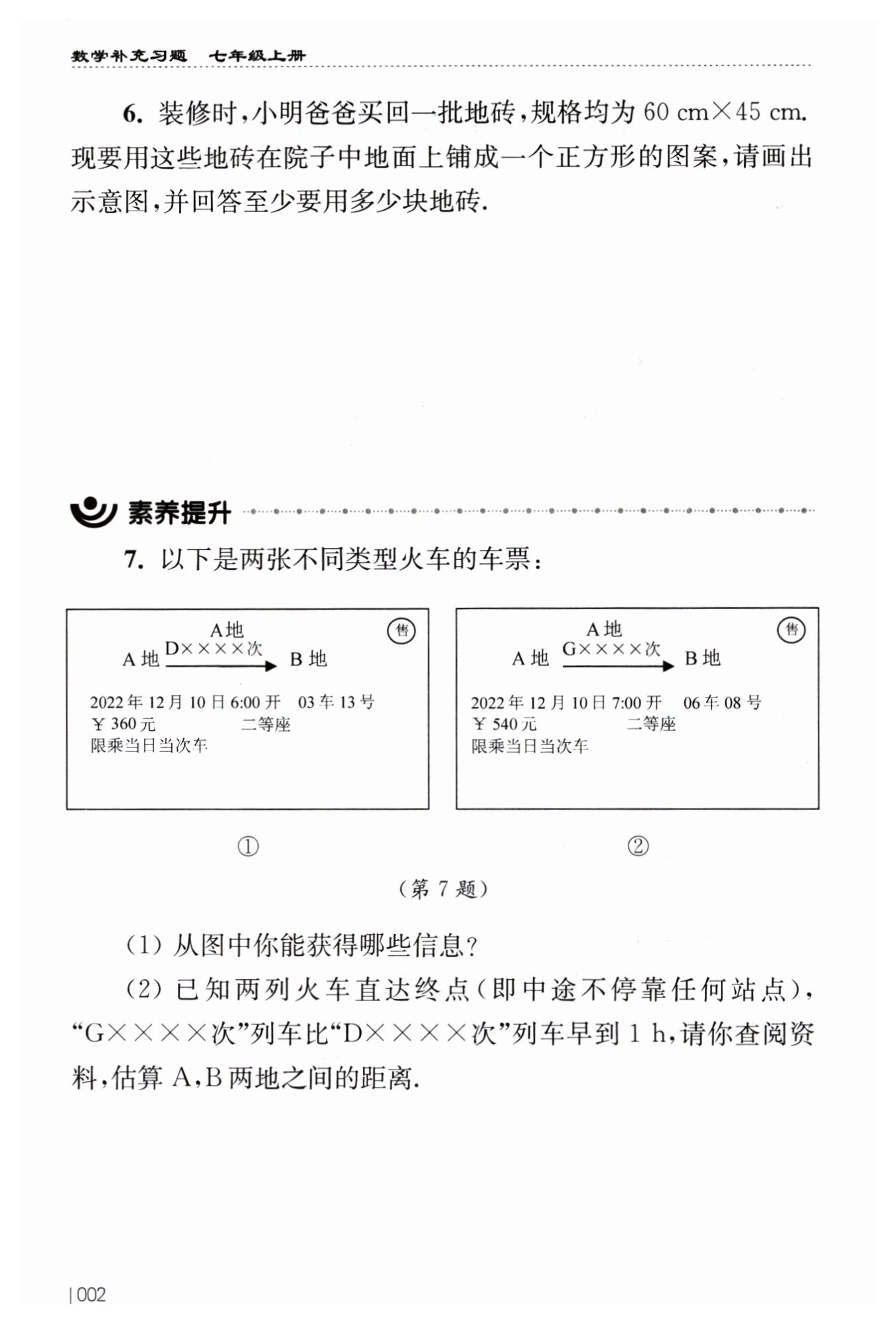 解:?$(1)“D××××$?次?$”$?列車出發(fā)時(shí)間是?$2022$?年?$12$?月?$10$?日?$6$?:?$00,$?