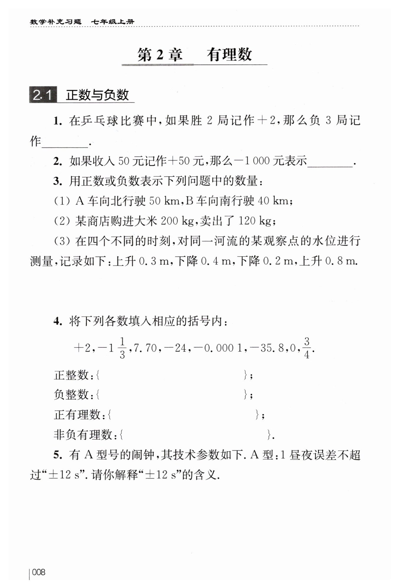 下降?$0.2\ \mathrm {m}{記作}-0.2\ \mathrm {m},$?上升?$0.8\ \mathrm {m}{記作}+0.8\ \mathrm {m}.$?