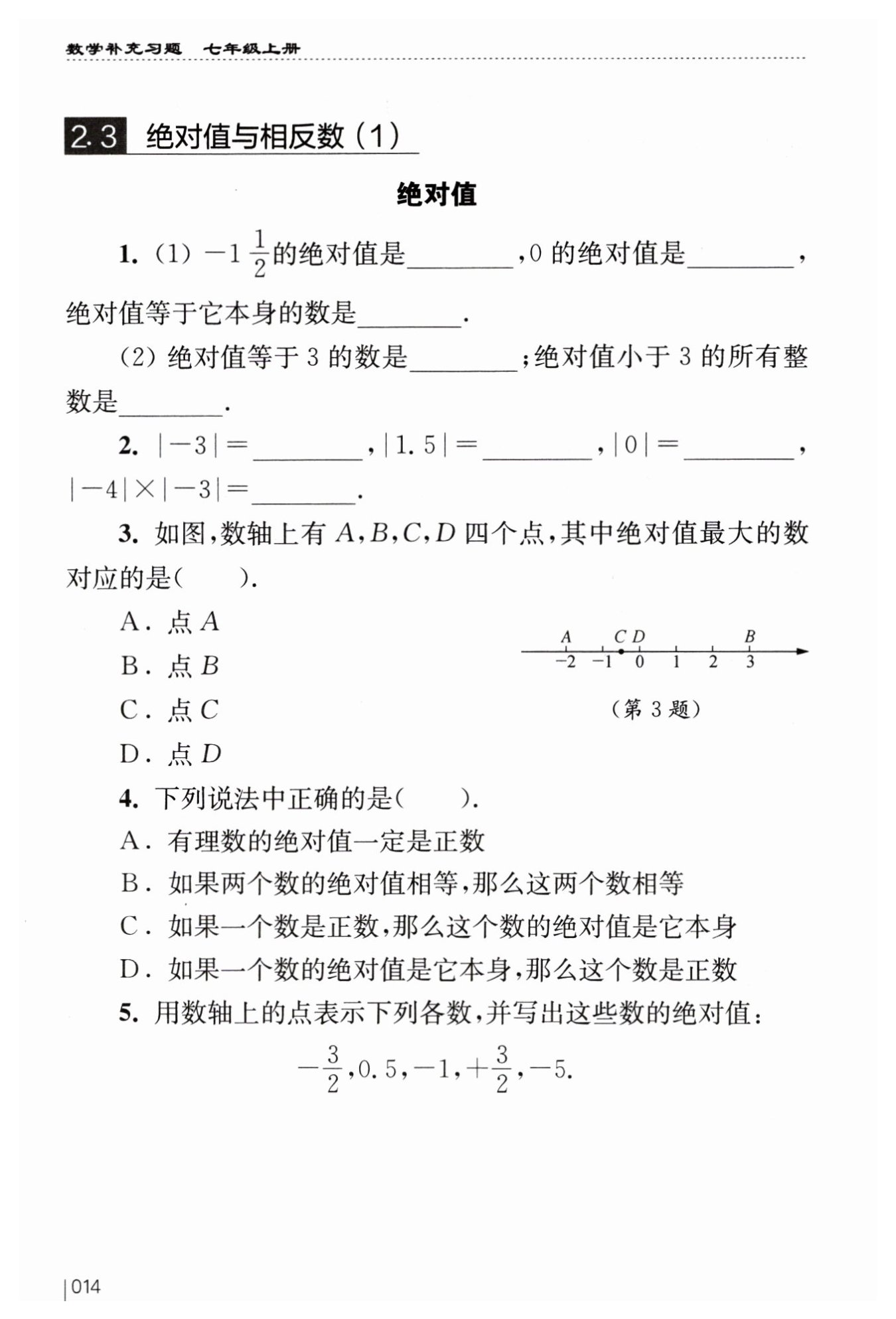 $|-\frac{3}{2}|=\frac{3}{2},$$|0.5| = 0.5,$$|-1| = 1,$$|+\frac{3}{2}|=\frac{3}{2},$$|-5| = 5。$