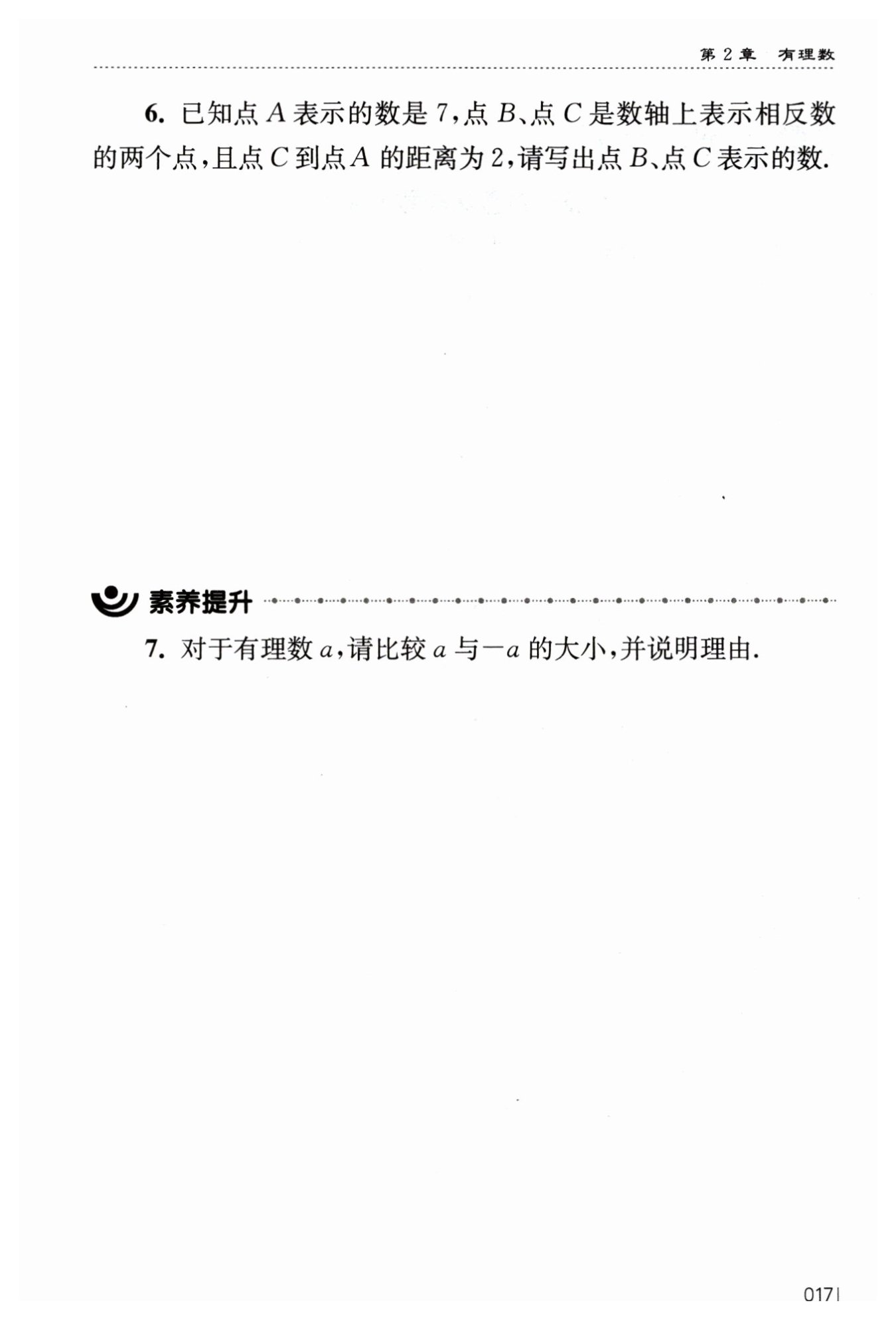 解:因?yàn)辄c(diǎn)?$C$?到點(diǎn)?$A$?的距離為?$2,$?點(diǎn)?$A$?表示的數(shù)是?$7.$?