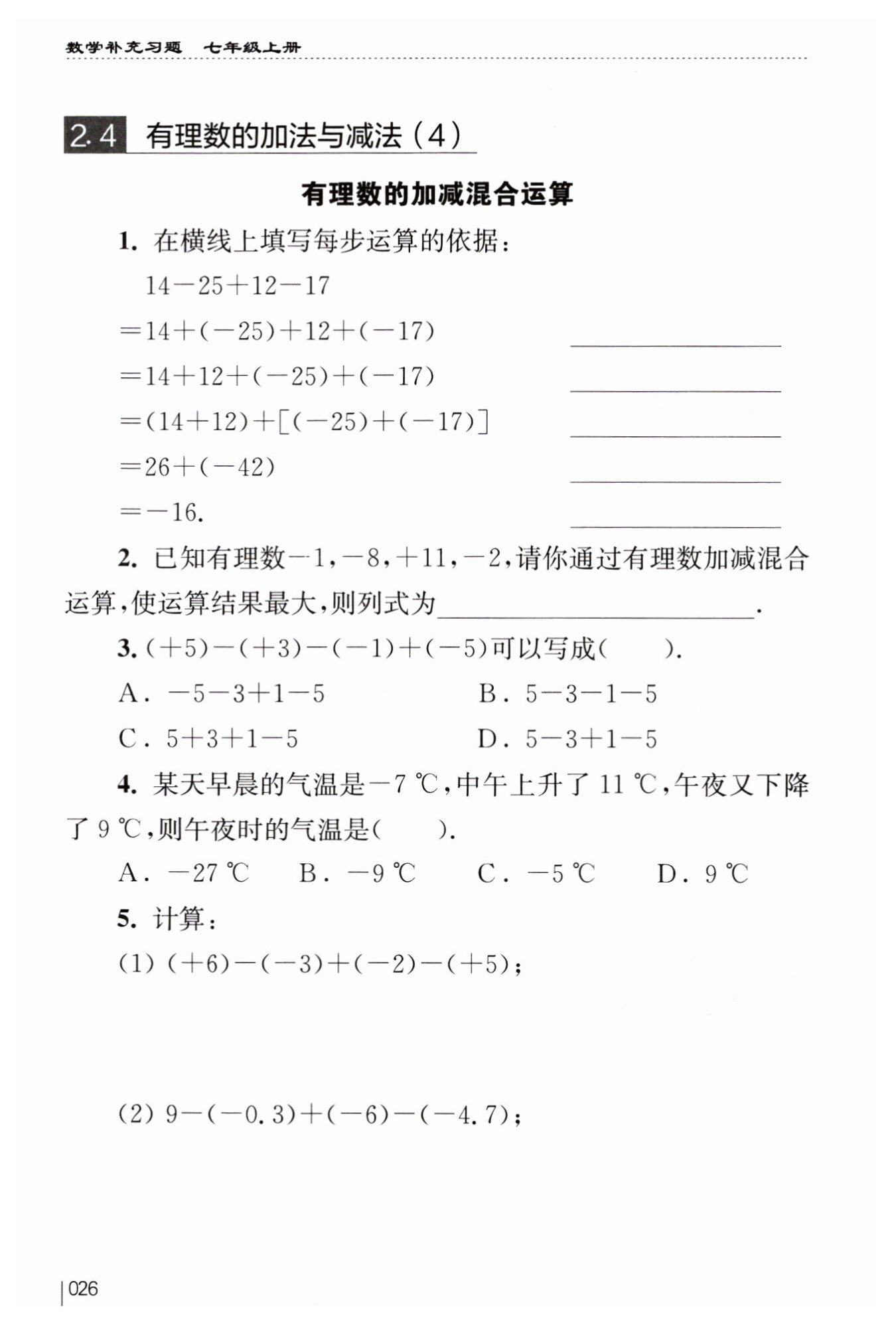 有理數(shù)減法法則