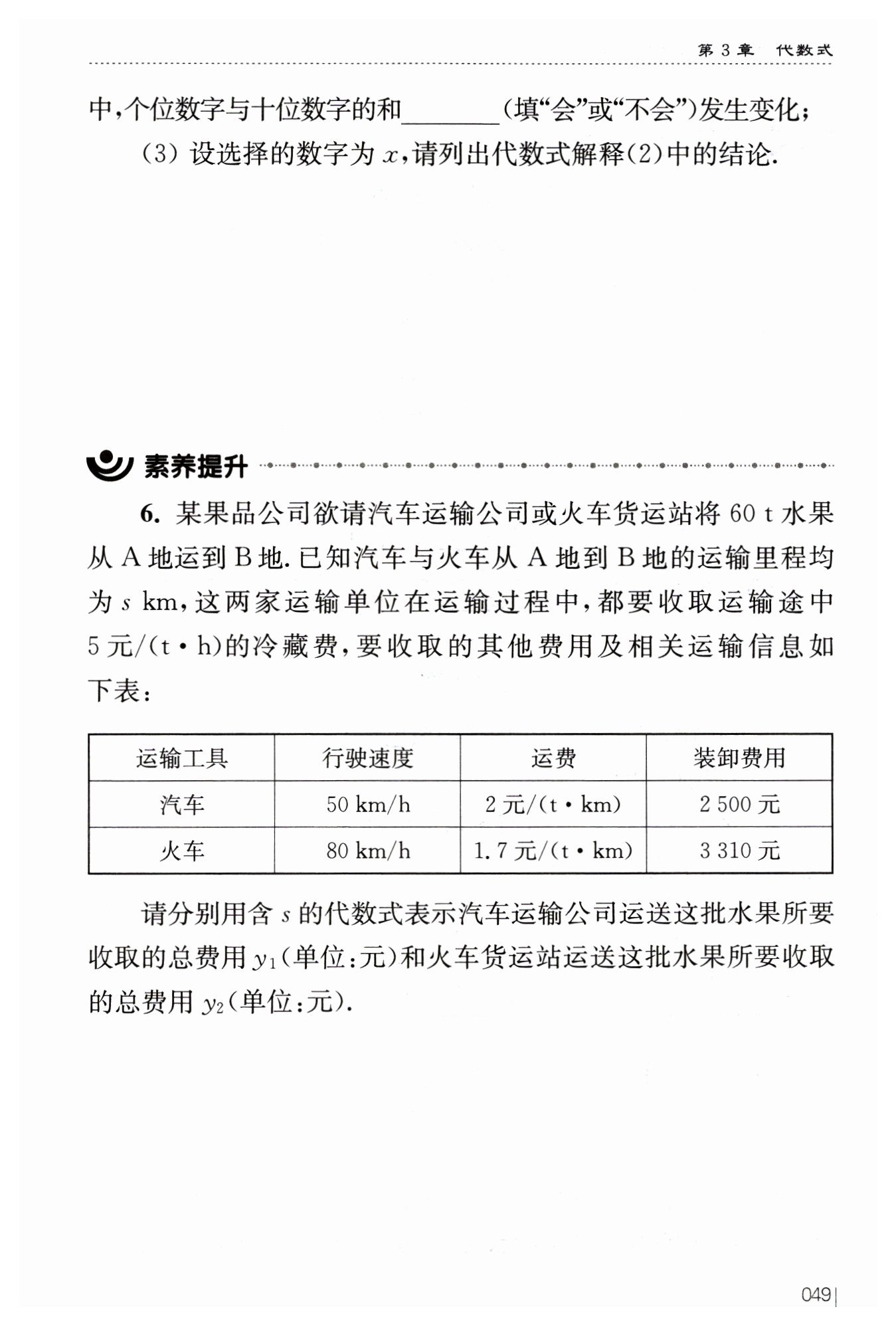 ?$y_{2}=5·\frac {s}{80}·60+1.7·60·s+3310=(105.75s+3310)$?元?$.$?