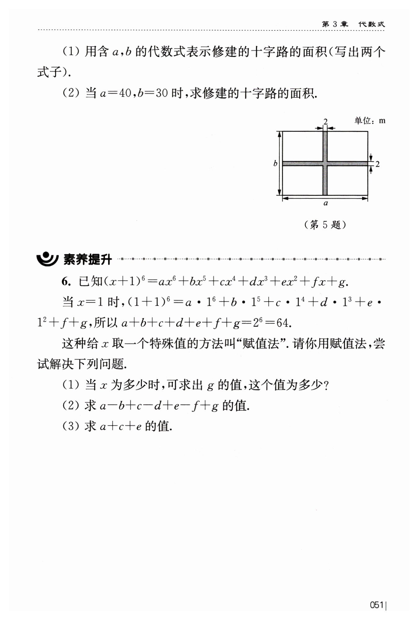 ?$(2)$?當(dāng)?$x=-1$?時(shí),?$a-b+c-d+e-f+g=(-1+1)^6=0.$?