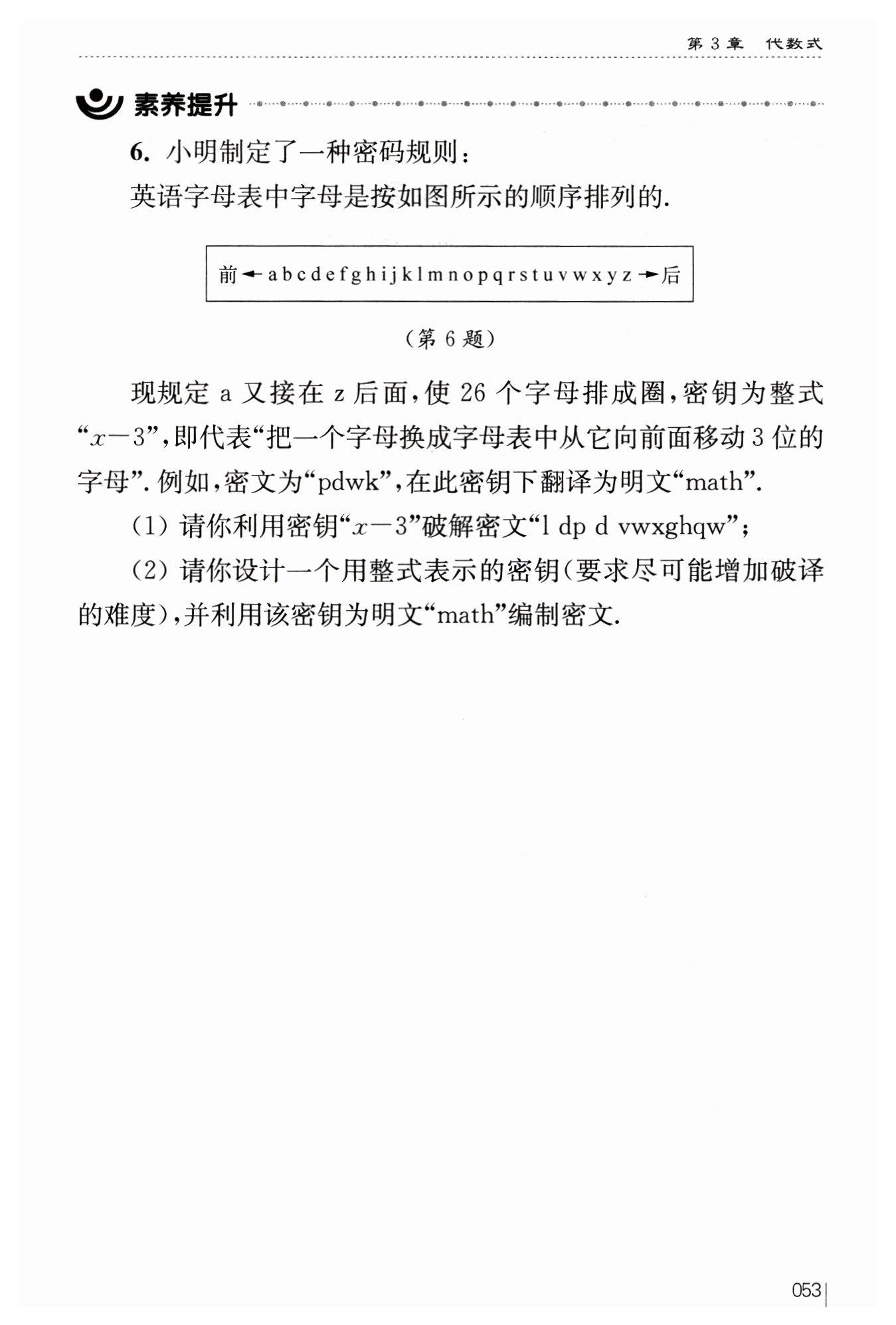 即代表?$“$?把一個字母換成字母表中從它向后面移動?$5$?位的字母?$”.$?