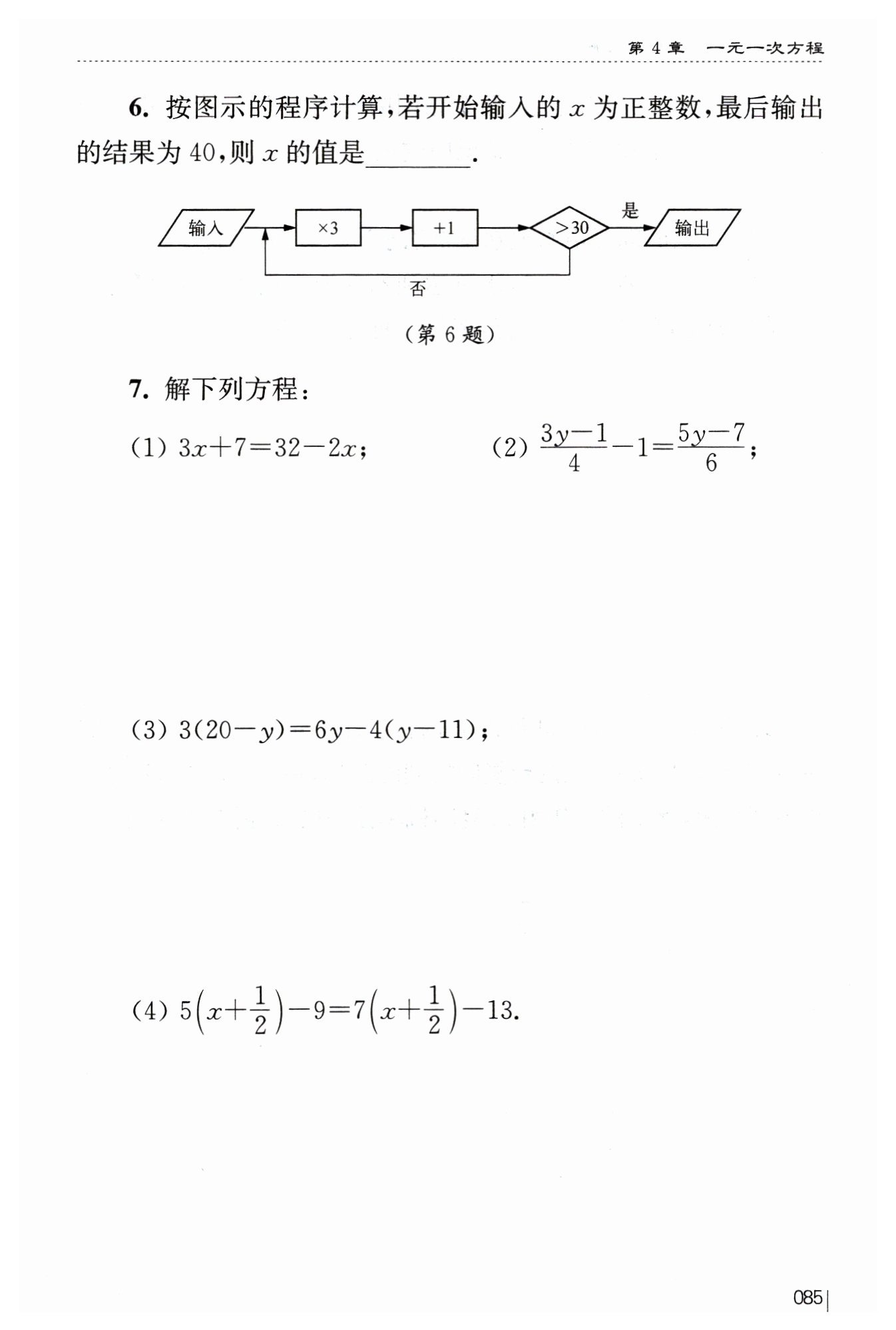 解:$3(20 - y) = 6y - 4(y - 11)$