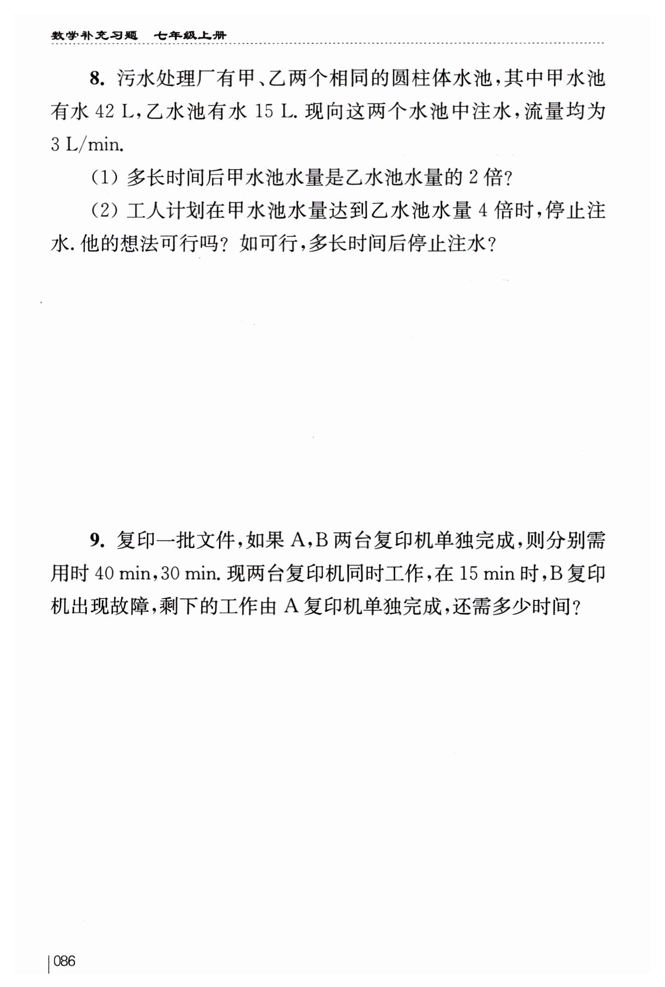 解?$:(1)$?設(shè)?$x$?分鐘后甲水池水量是乙水池水量的?$2$?倍。