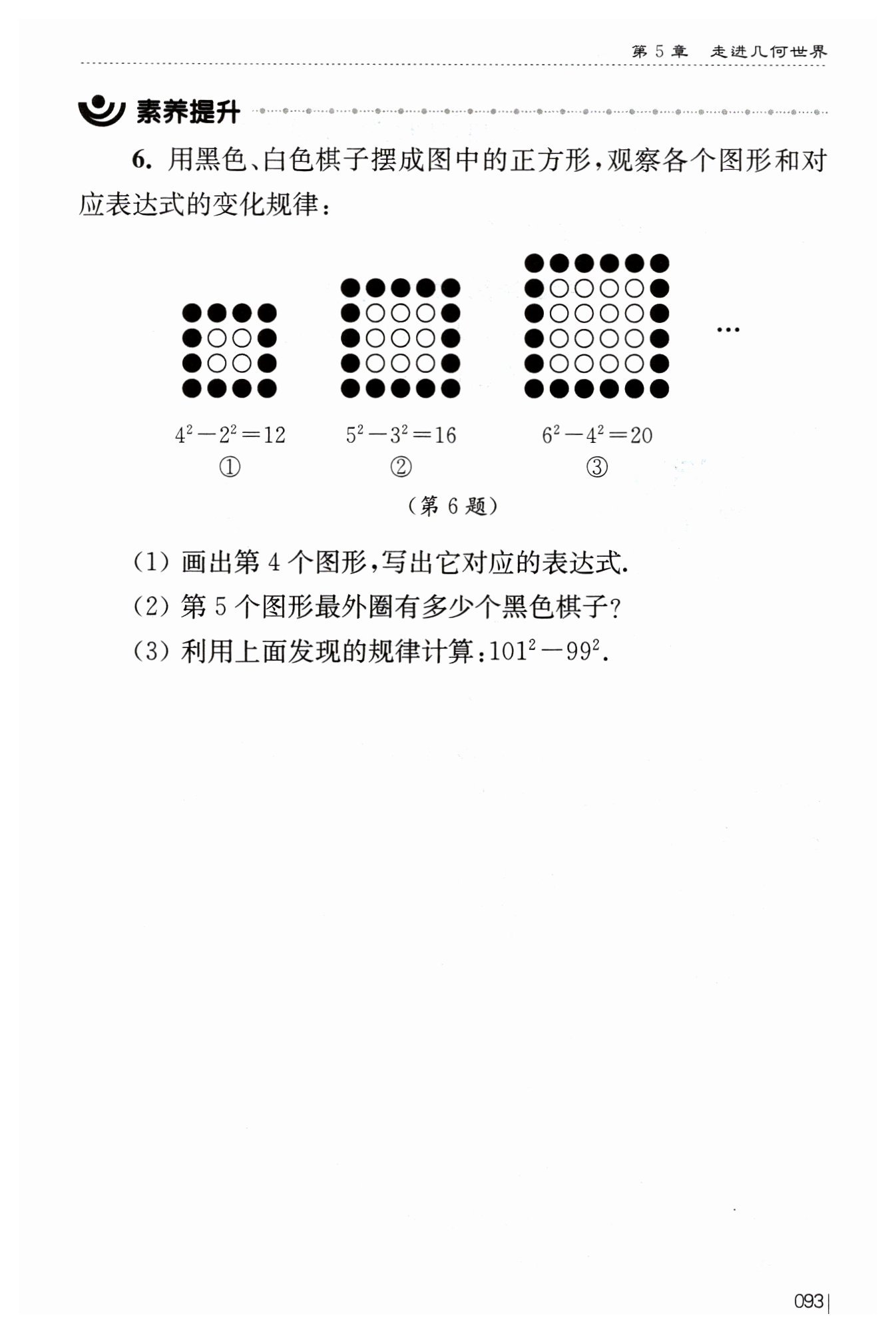 故第?$5$?個圖形最外圈有?$28$?個黑色棋子?$.$?
