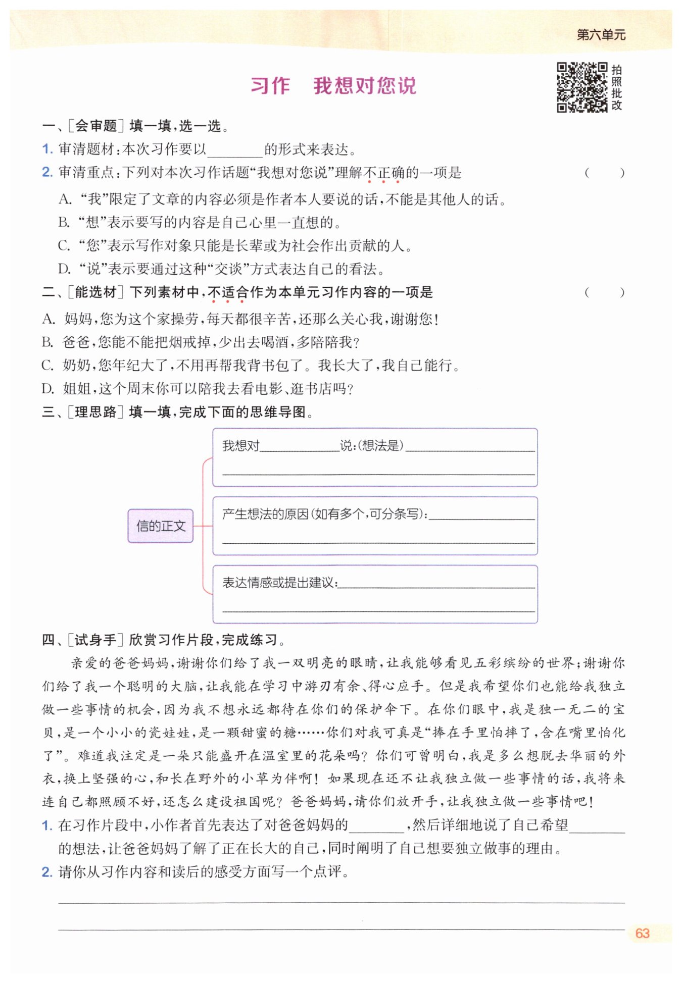 習(xí)作表達(dá)了自己對爸爸媽媽的感謝,同時提出了自己的想法,又懇切地闡述了理由,