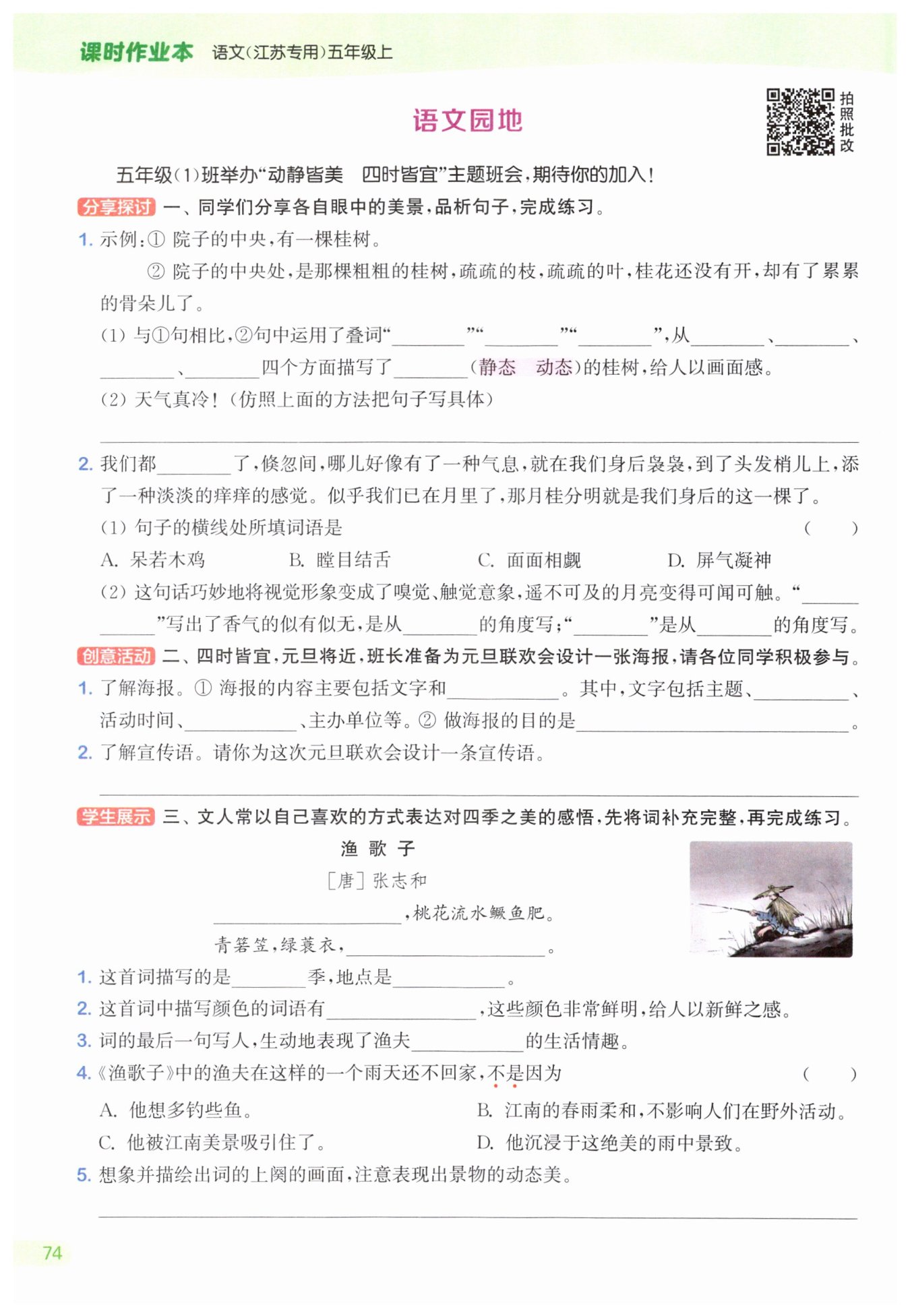 示例:西塞山前白鷺在自由地翱翔,江岸桃花盛開,春水初漲,江水中肥美的鱖魚歡快地游著。