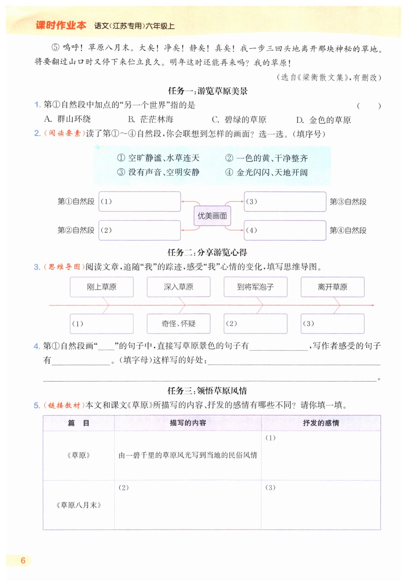 表達(dá)了對草原的喜愛及贊美之情