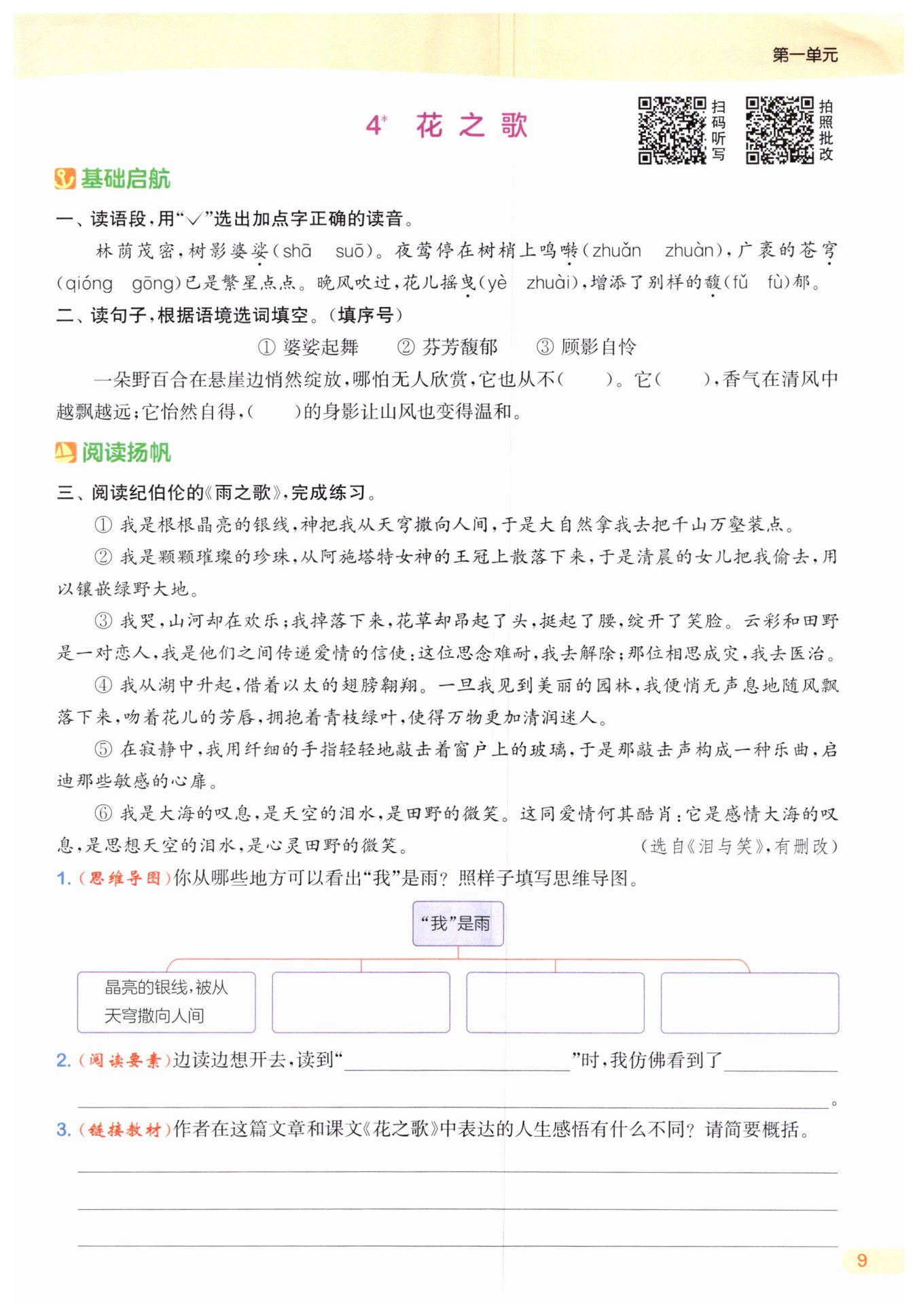《花之歌》:人生要像花一樣,失意時不顧影自憐,得意時不孤芳自賞。無論處于哪種境遇,總是積極地向往和追求光明?!队曛琛罚喝松裼暌粯?,默默奉獻(xiàn),做一個對社會有用的人。