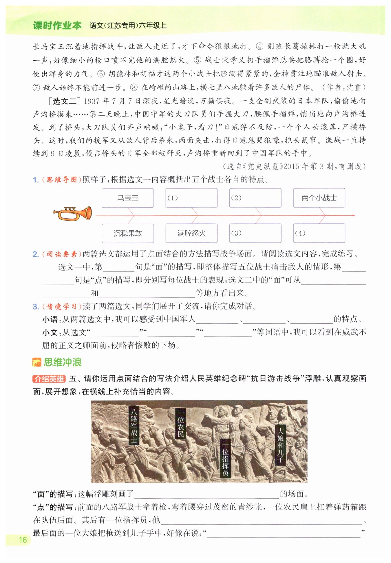 脊背筆直,手指向前方,眼神堅(jiān)定,指揮大家向敵人發(fā)起進(jìn)攻