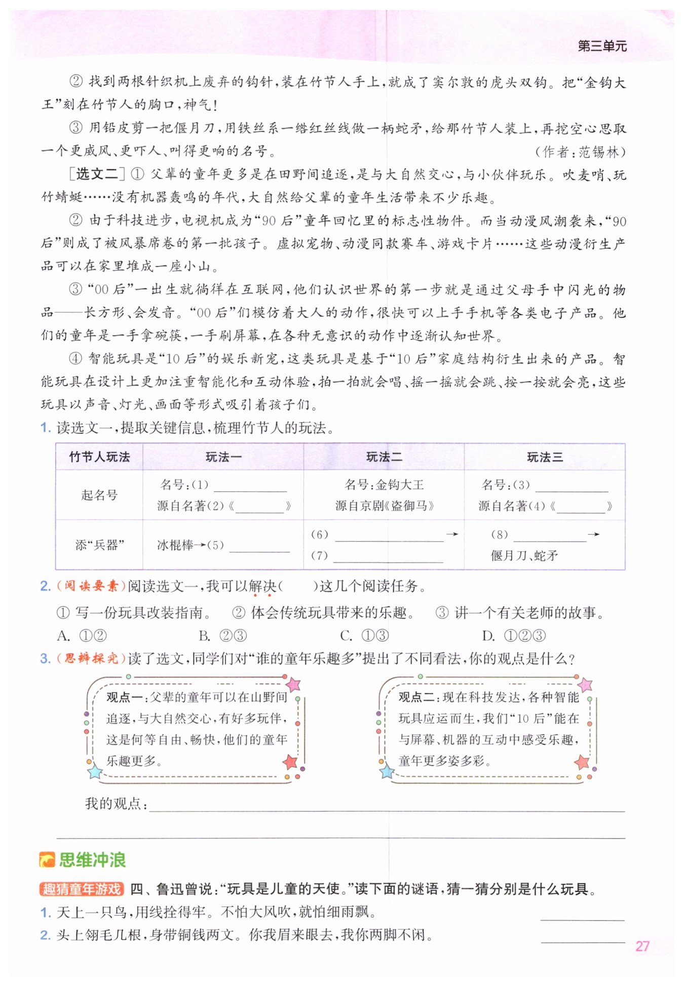 示例:父輩的童年和“10后”的童年各有各的樂趣,無法簡單地評判誰的童