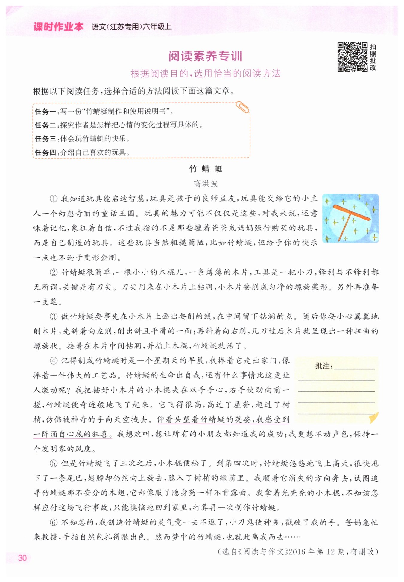 寫出了“我”對竹蜻蜓的