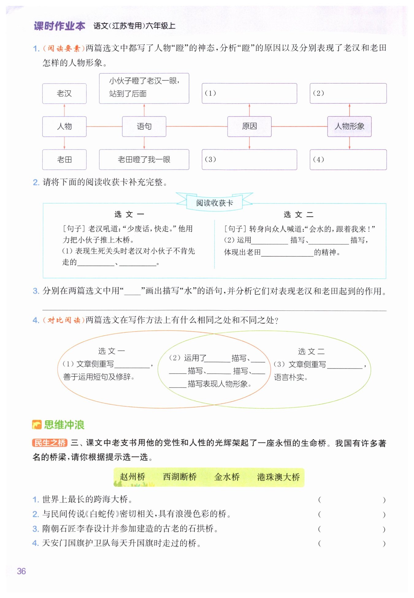 這兩處寫“水”都是環(huán)境描寫,表現(xiàn)了情勢的危急,襯托了老漢和老田沉著無畏的人物形象。