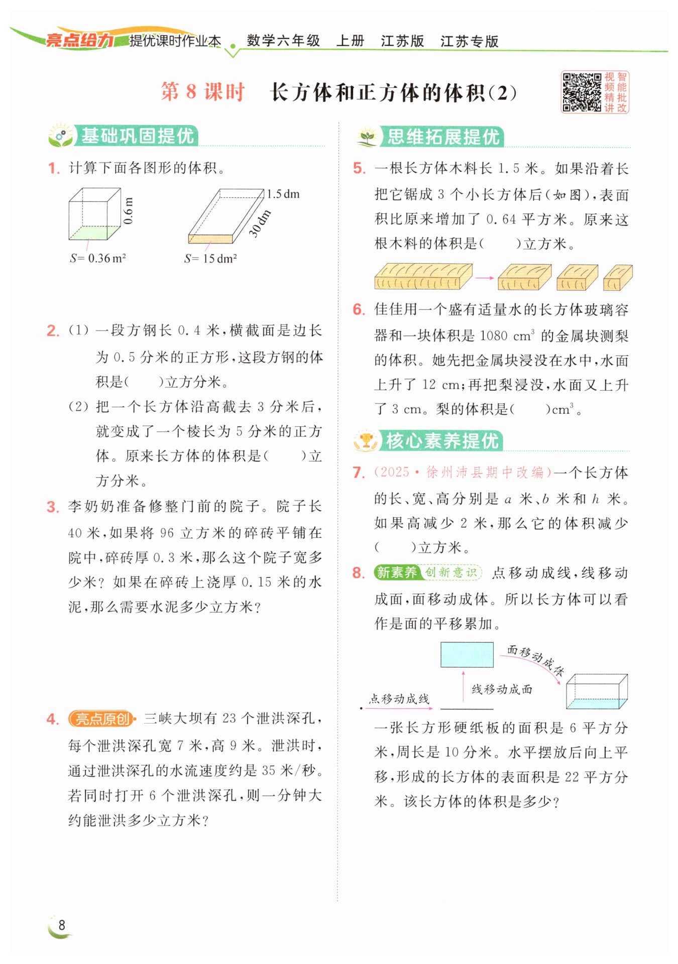 $答:該長(zhǎng)方體的體積是6立方分米。$