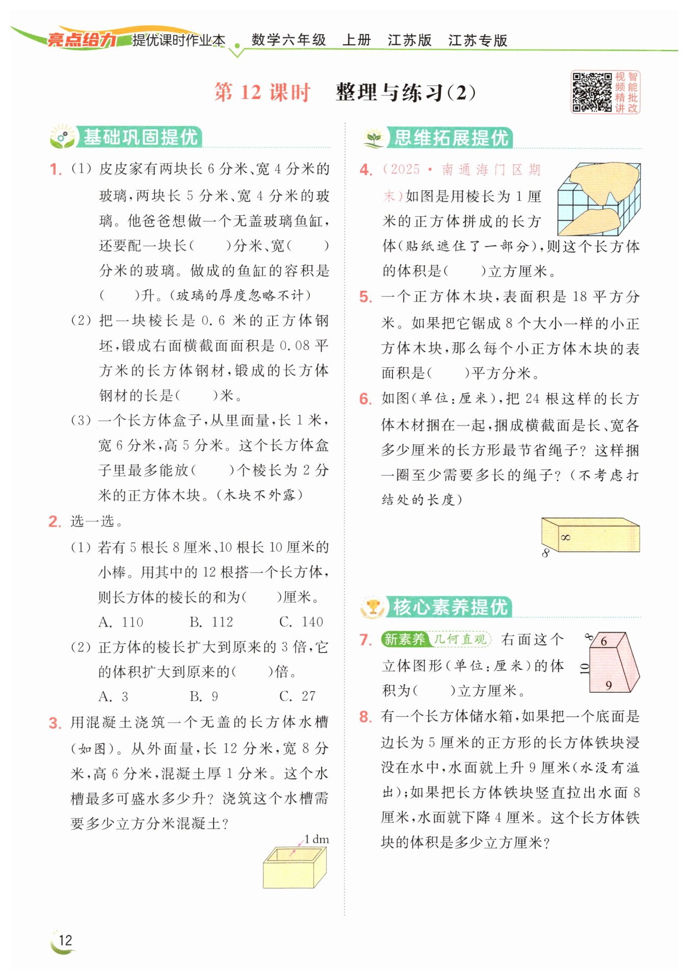 混凝土:12×8×6?300=276(立方分米)