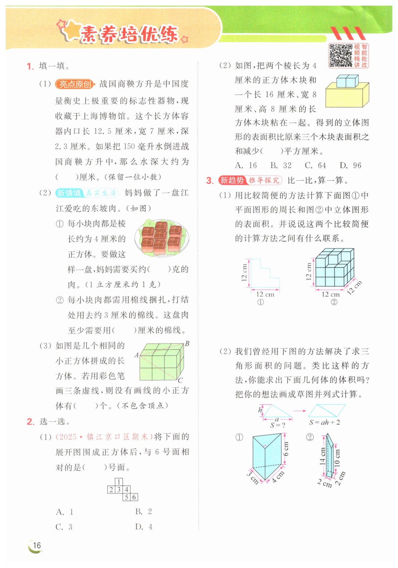 3×4×6÷2=36(cm3)