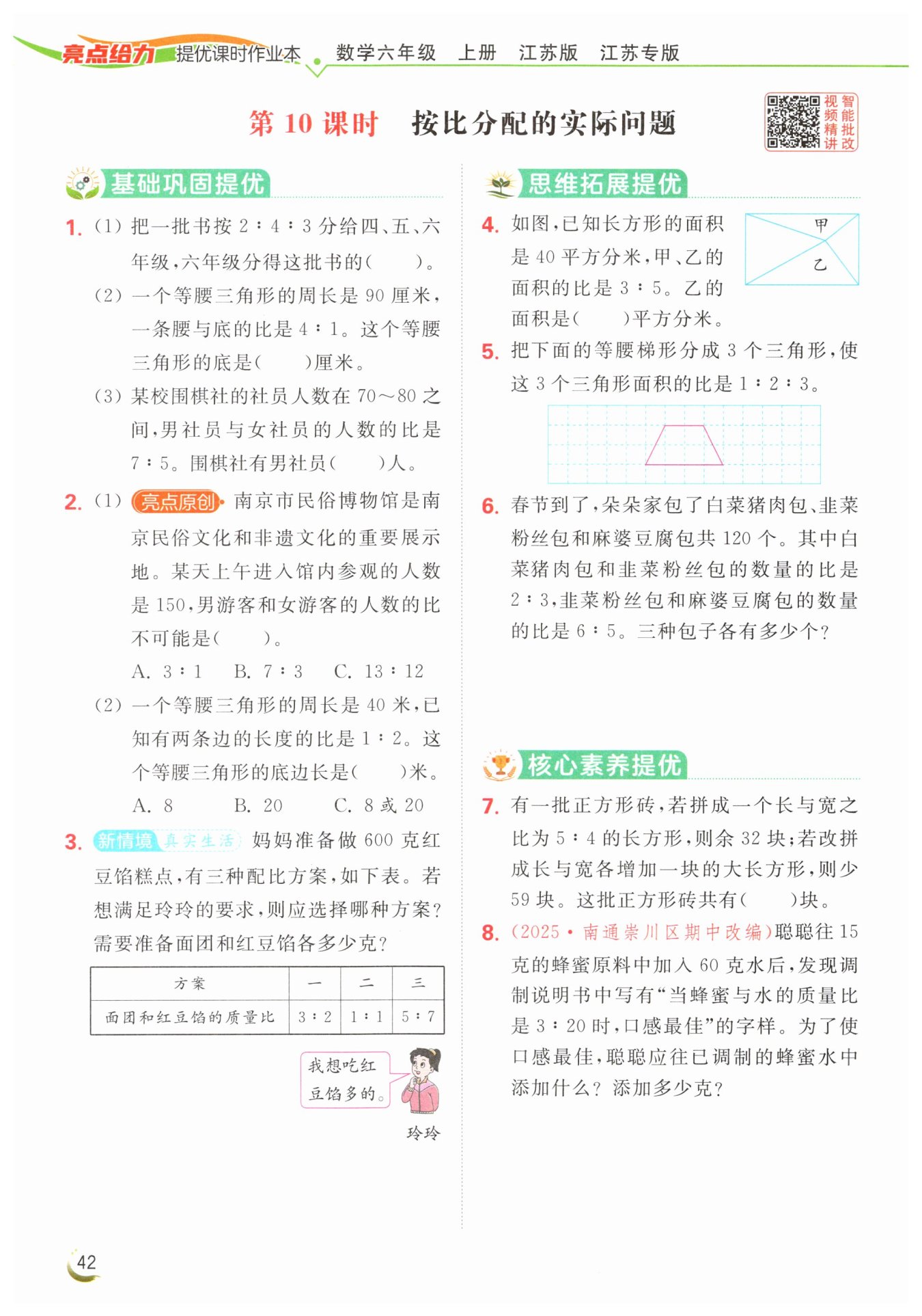 因為白菜豬肉包:韭菜粉絲包$ = 2:3 = 4:6,$韭菜粉絲包:麻婆豆腐包$ = 6:5,$所以白菜豬肉包:韭菜粉絲包:麻婆豆腐包