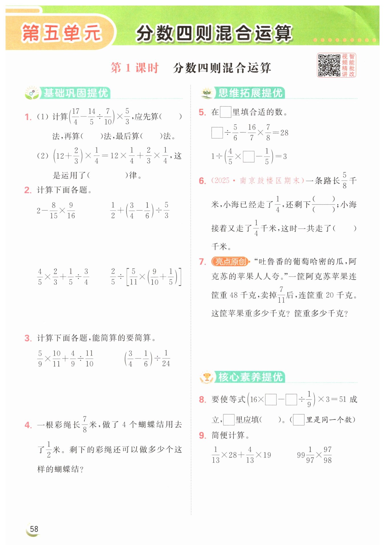 $蘋果:(48-20)÷\frac{7}{11}=44(千克)\ $
