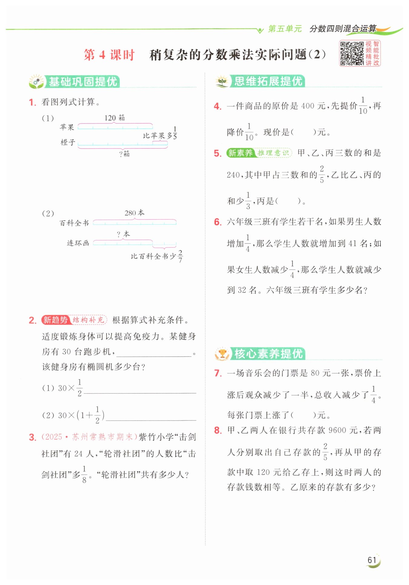 $9600×(1-\frac{2}{5})=5760(元)\ $