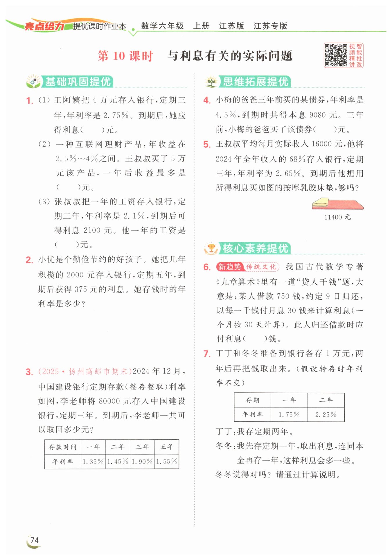 $ 冬冬:第一年的利息:10000×1.75\%×1=175(元)$