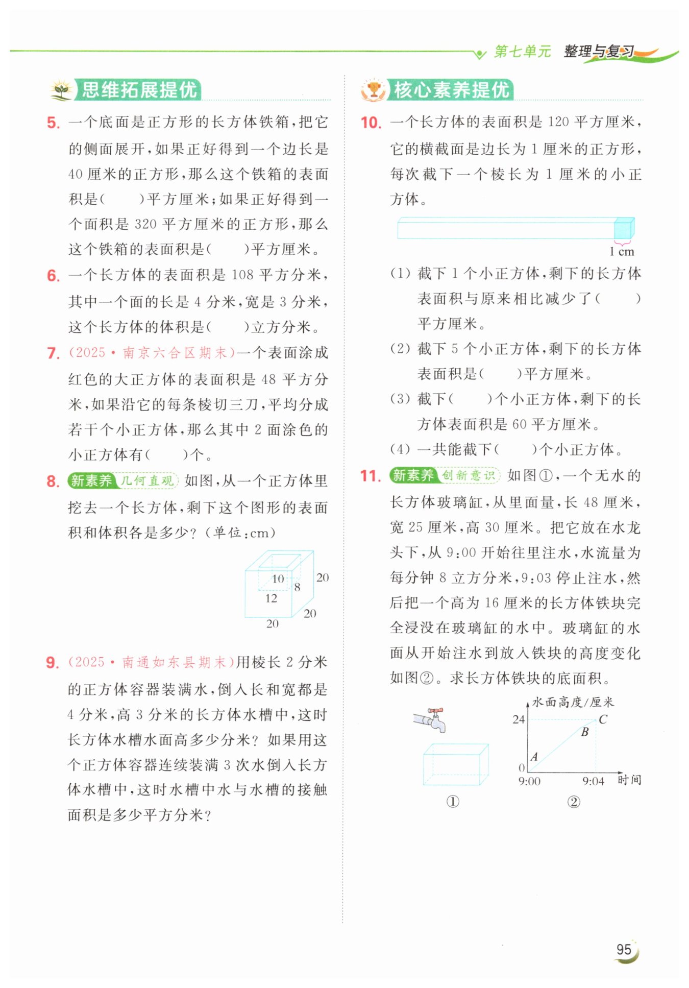 這時長方體水槽中水面高0.5分米。 0.5×3=1.5(分米)