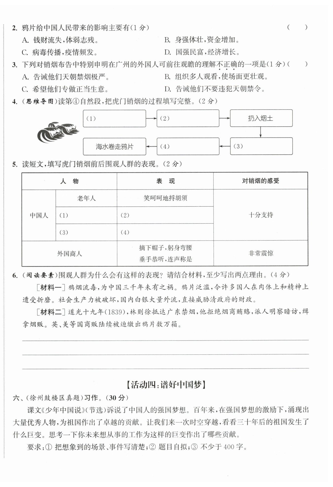 示例:從材料一可以看出鴉片泛濫,國(guó)人在肉體上和精神上遭受折磨,社會(huì)生產(chǎn)力被