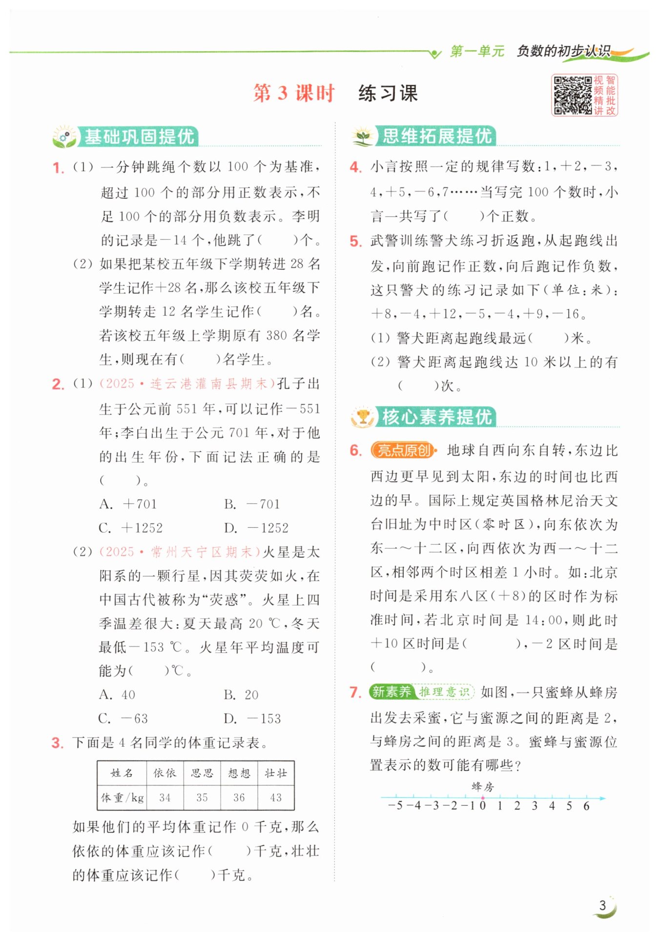 當(dāng)蜜蜂位置表示的數(shù)是$-3$時(shí),蜜源位置表示的數(shù)是$-3 - 2 = -5$或$-3 + 2 = -1。$