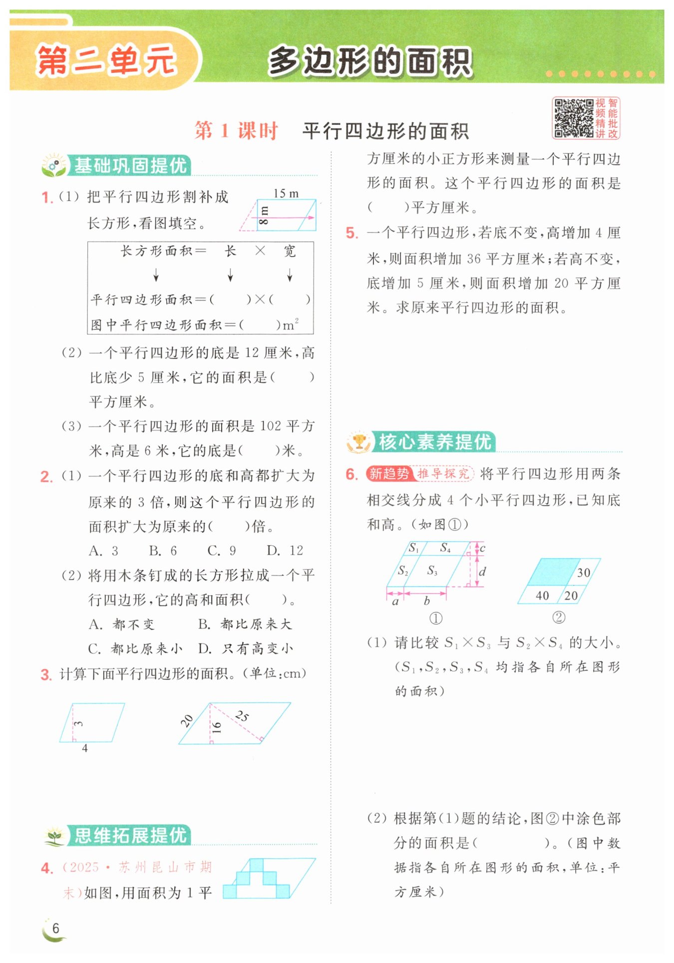 原來平行四邊形的高:$20\div5 = 4$(厘米)