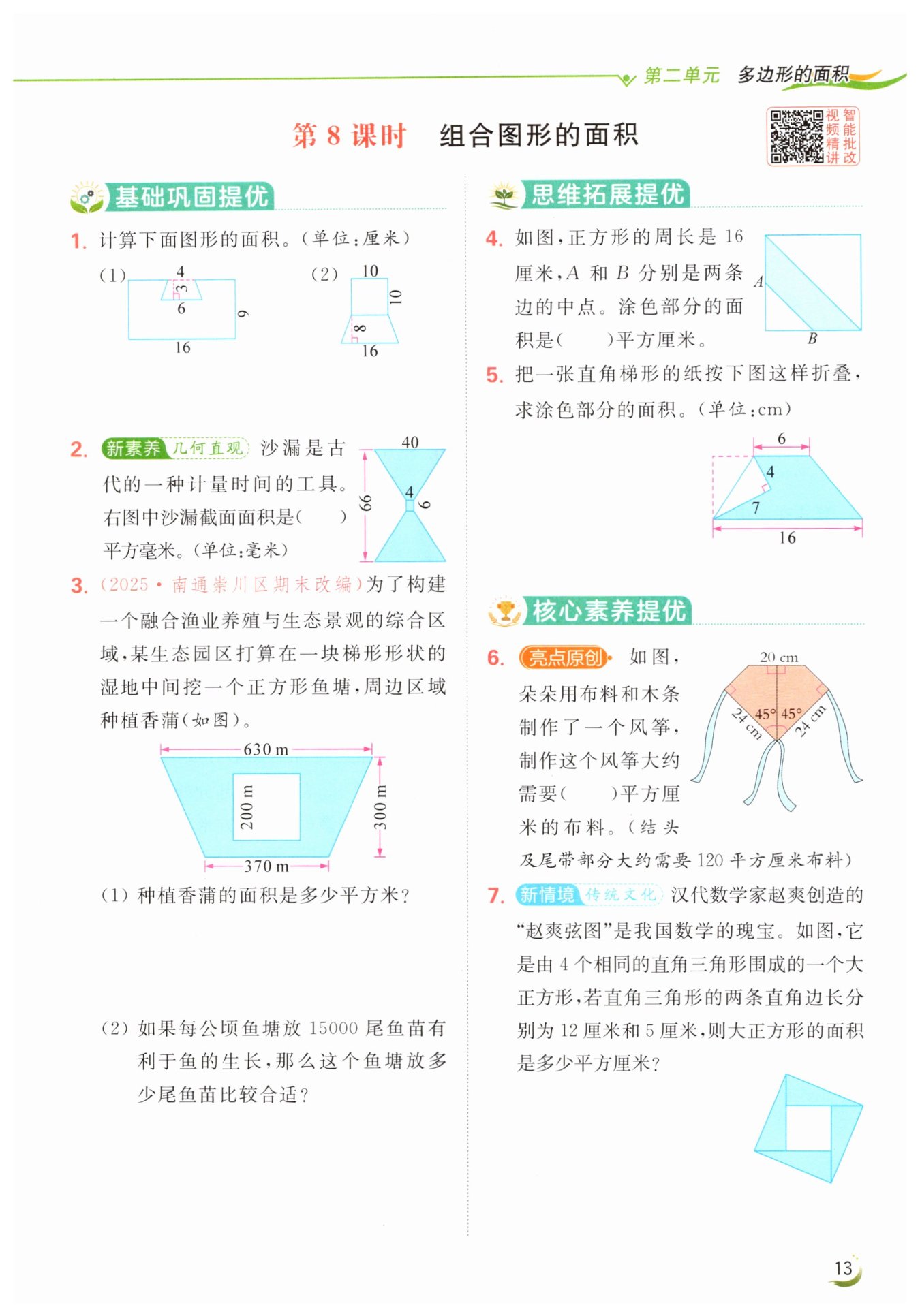 中間小正方形邊長(zhǎng):$12 - 5 = 7$(厘米),面積:$7\times7 = 49$(平方厘米)