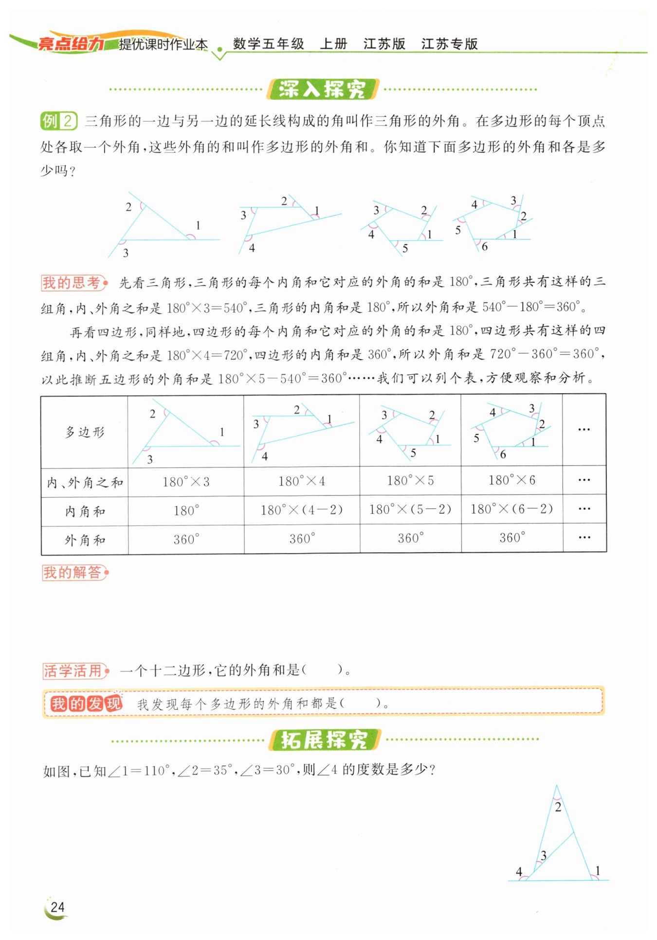 三角形外角和為$180^{\circ}\times3 - 180^{\circ}=360^{\circ};$