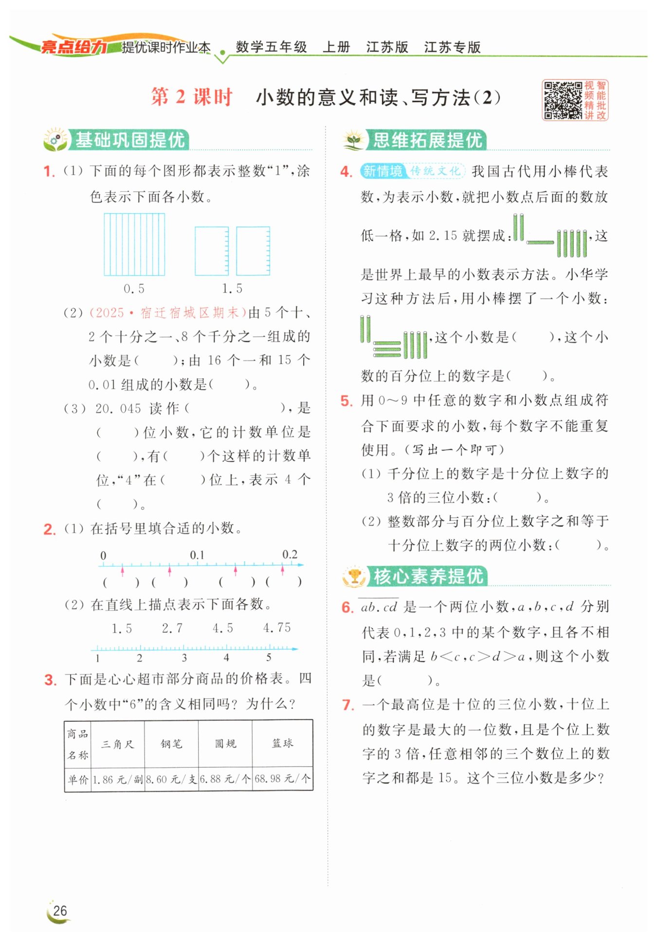 答: 不相同。因?yàn)?1.86$中的“$6$”表示$6$個(gè)$0.01,$$8.60$中的“$6$”表示$6$個(gè)$0.1,$$6.88$中的“$6$”表示$6$個(gè)$1,$$68.98$中的“$6$”表示$6$個(gè)$10,$所以含義都不相同。(合理即可)