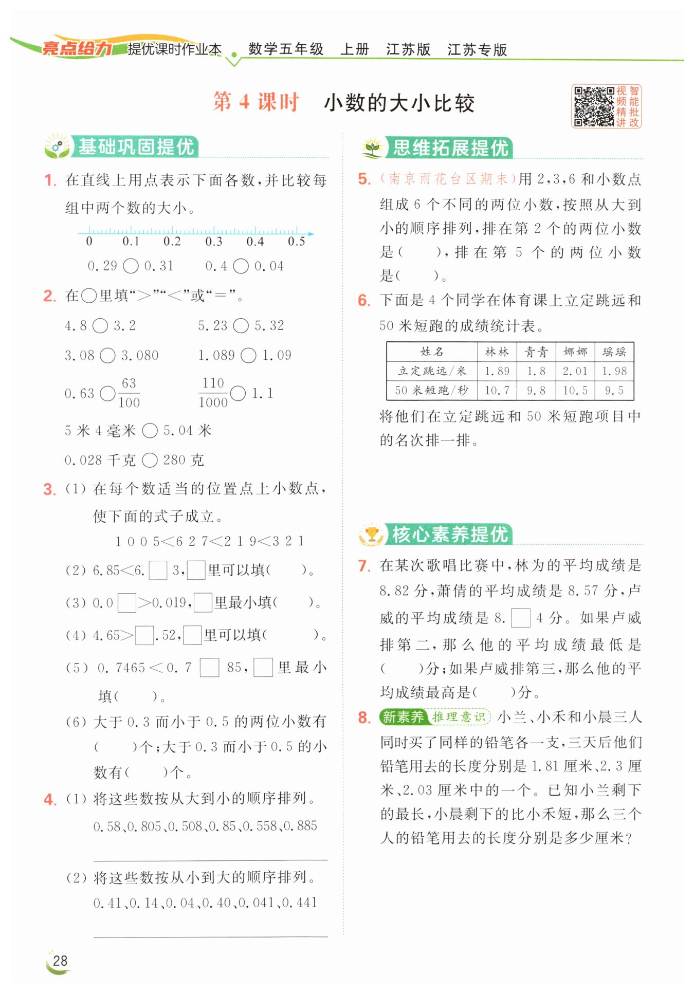 立定跳遠(yuǎn):$2.01>1.98>1.89>1.8,$娜娜是第一名,瑤瑤是第二名,林林是第三名,青青是第四名。