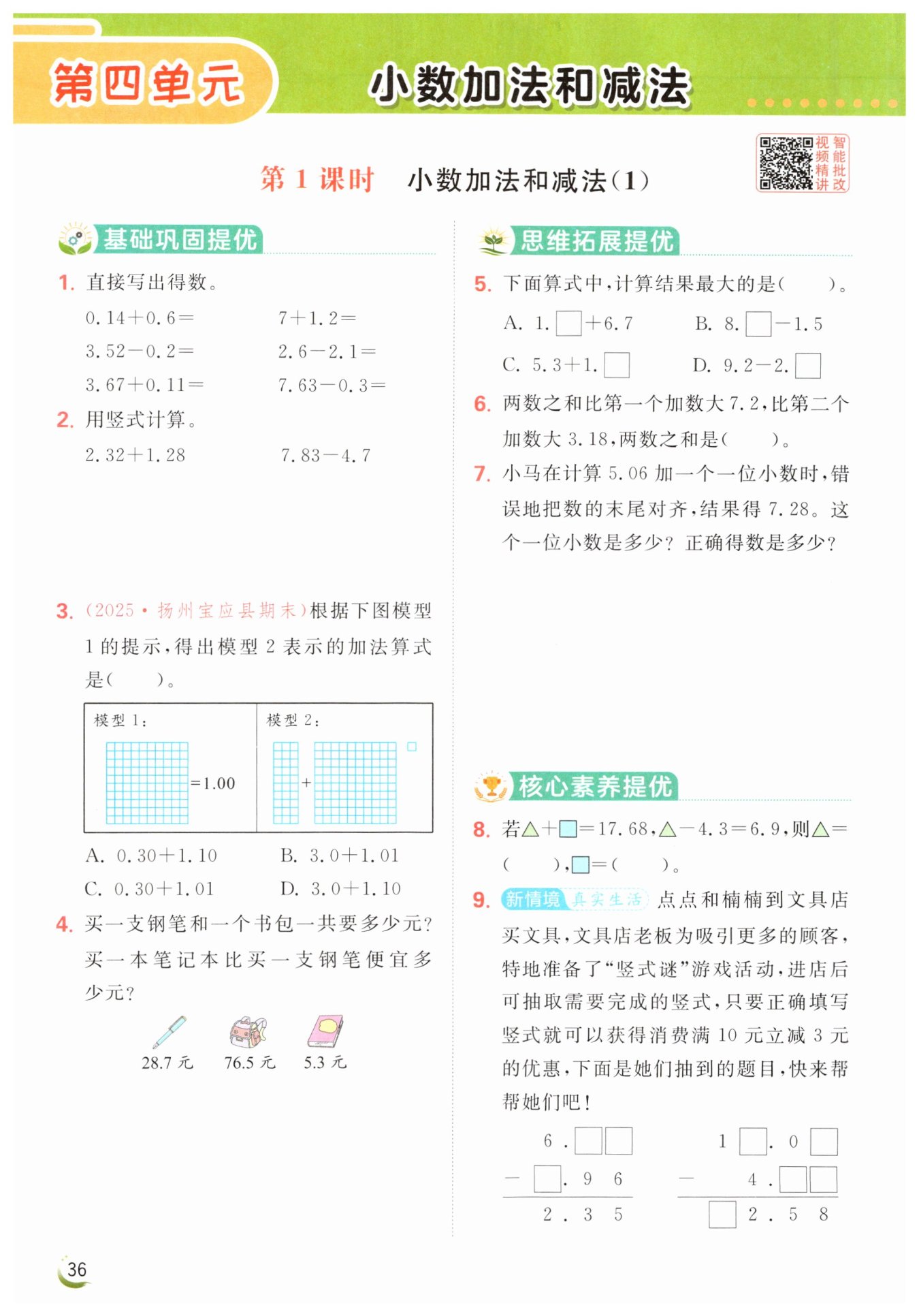 買一本筆記本比買一支鋼筆便宜:$28.7 - 5.3 = 23.4$(元)