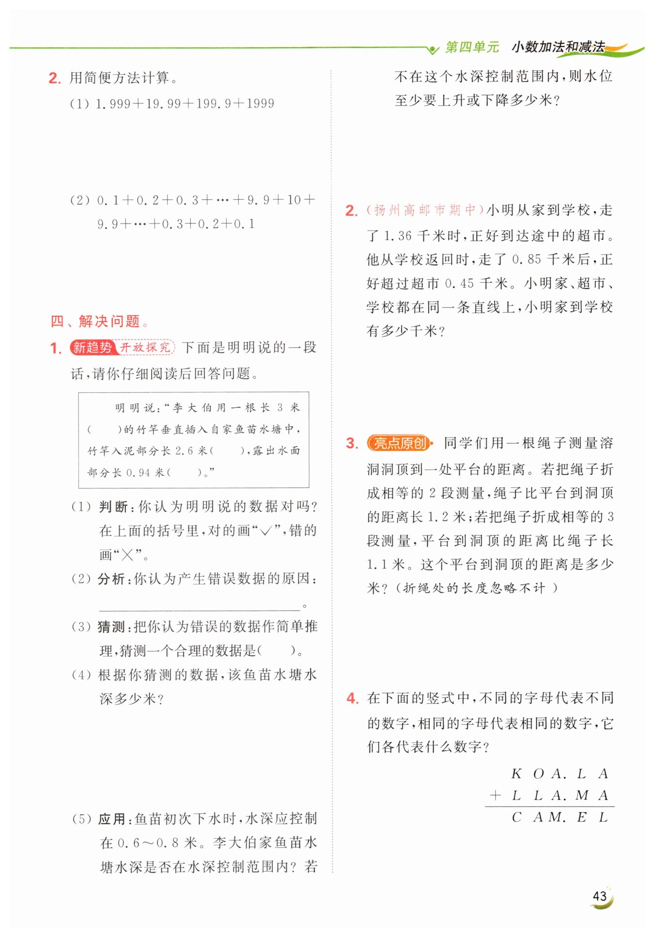$3 - 0.26 - 0.94 = 1.8$(米)答:該魚(yú)苗水塘水深1.8米。