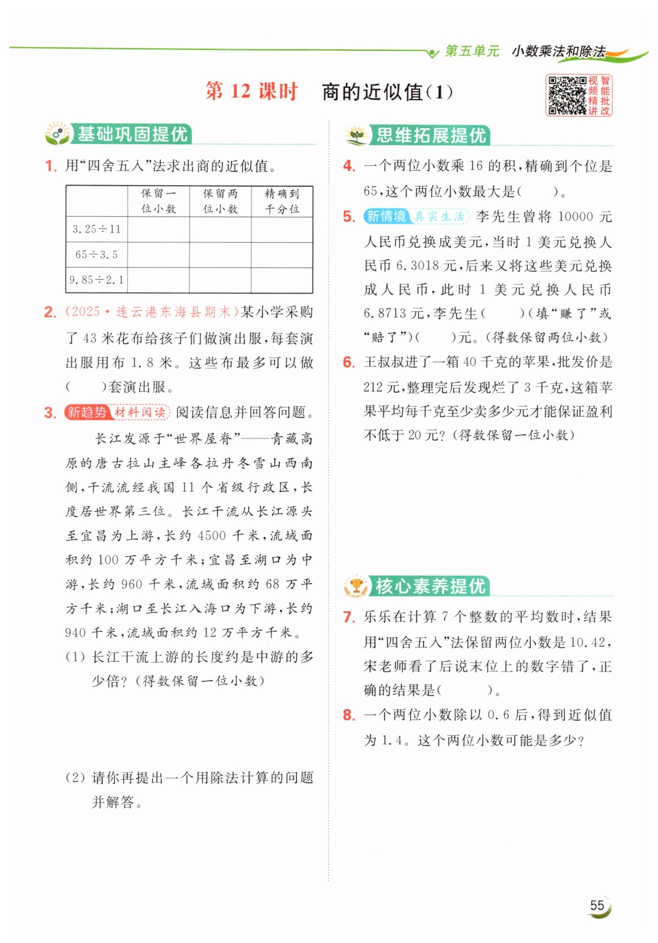 $4500\div960 = 4.6875\approx4.7$答:長(zhǎng)江干流上游的長(zhǎng)度約是中游的4.7倍。